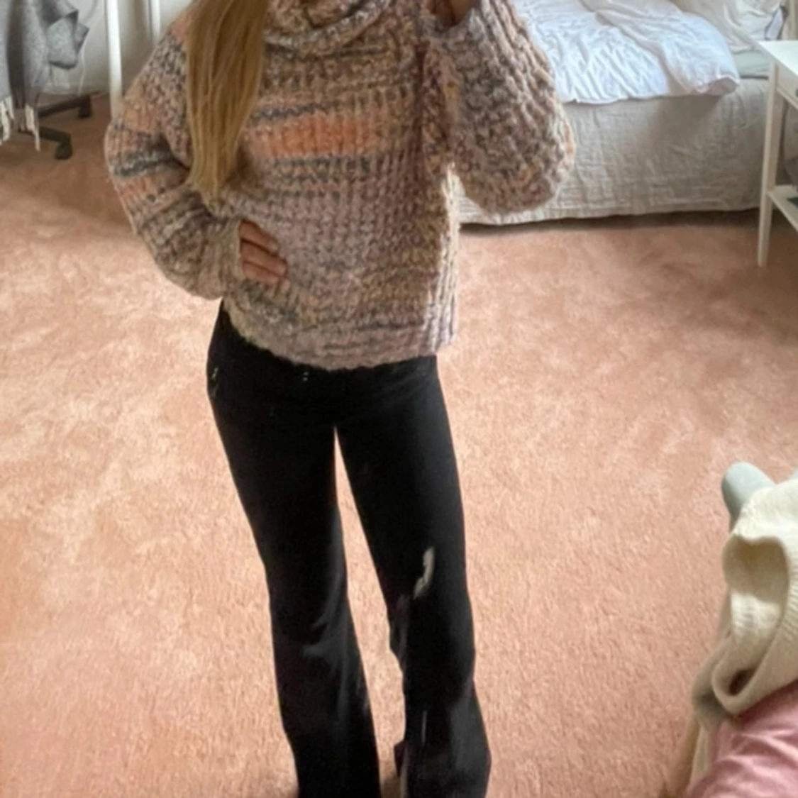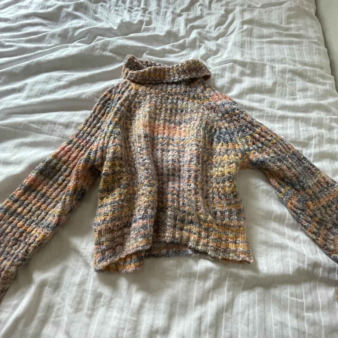 Supermysig stickad tröja från Lindex i pastelliga toner av rosa, gul, lila och grå. Tröjan har en loose fit, hög krage och långa ärmar. Perfekt för dig som gillar en chill och färgglad vibe till hösten eller vintern.