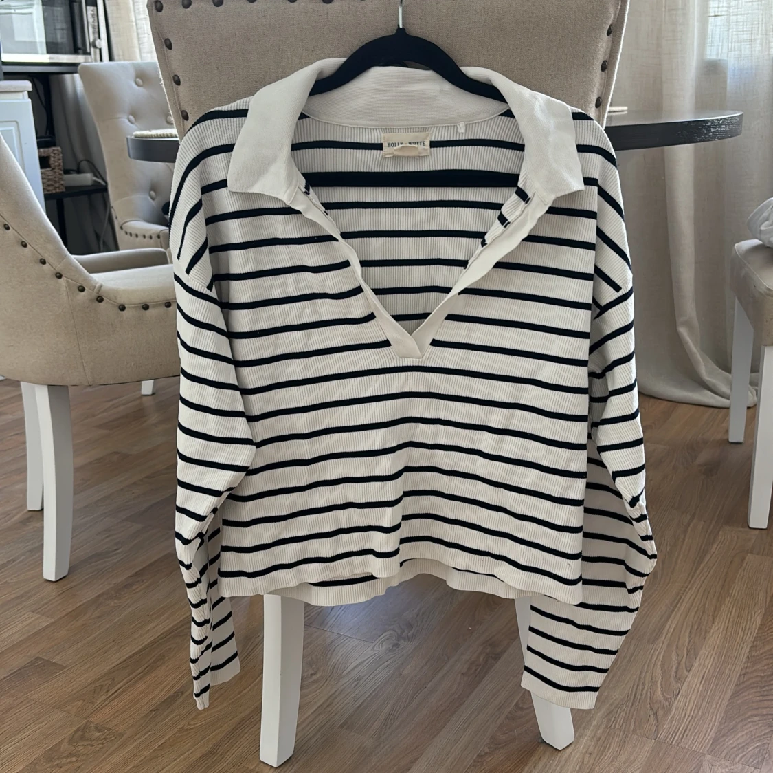 Blå vit randig tröja från Lindex i stl xs, Är i en kortare modell Andvänd fåtal ggr