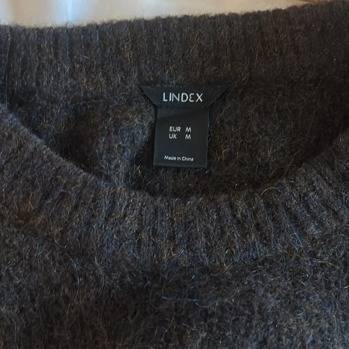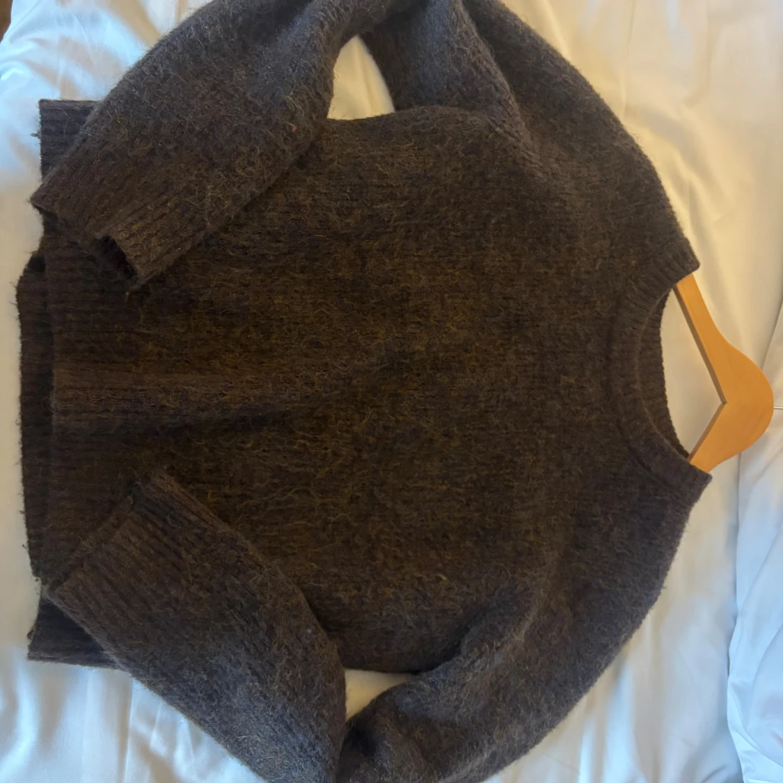 Mörkbrun stickad tröja från Lindex med rund hals och långa ärmar. Storlek M. Nypris 499