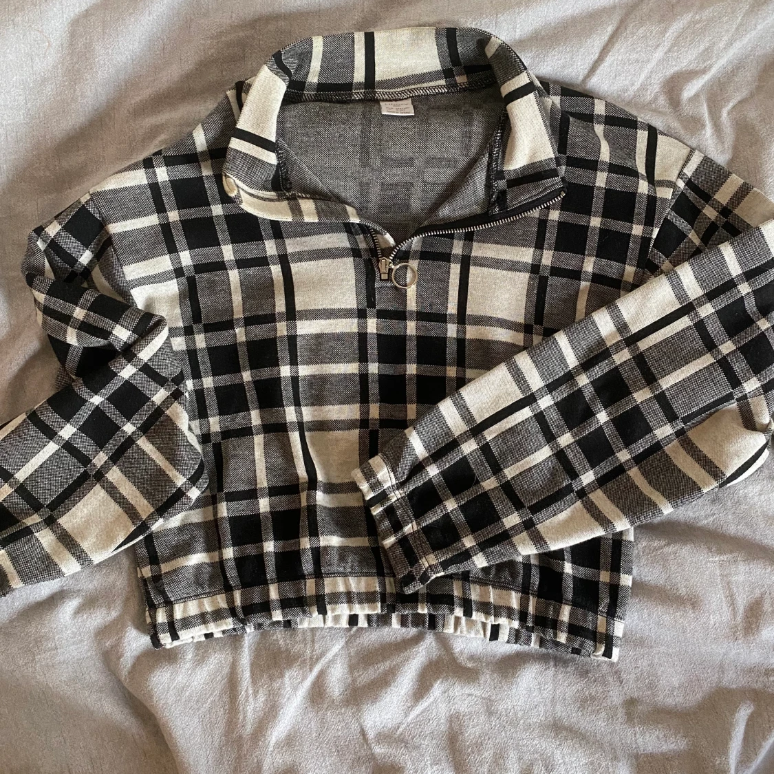 Svart och vit rutig tröja från Lindex i storlek 134/140. I bra skick, inga synliga tecken på användning. Säljer pga för liten storlek