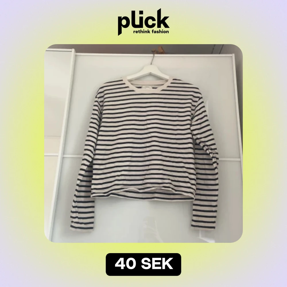 En tröja från Lindex med svara ränder med en liten vit beige bakgrund Skriv för fler bilder