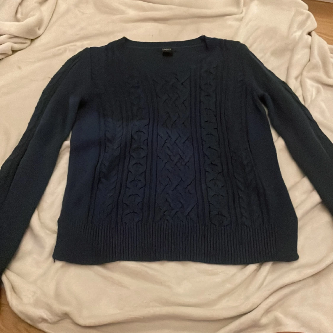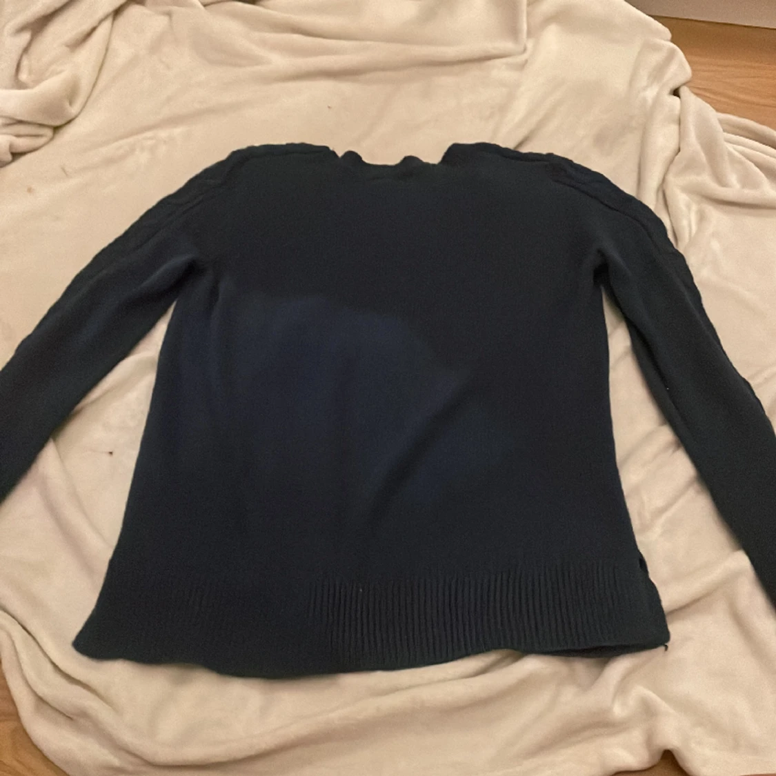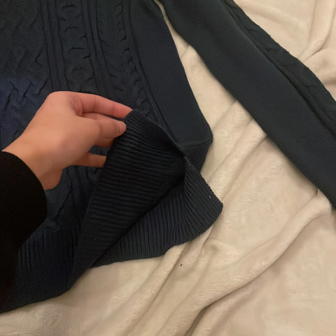 säljer en söt stickad mörkblå tröja, köpt på Lindex storlek S. Använd en gång.