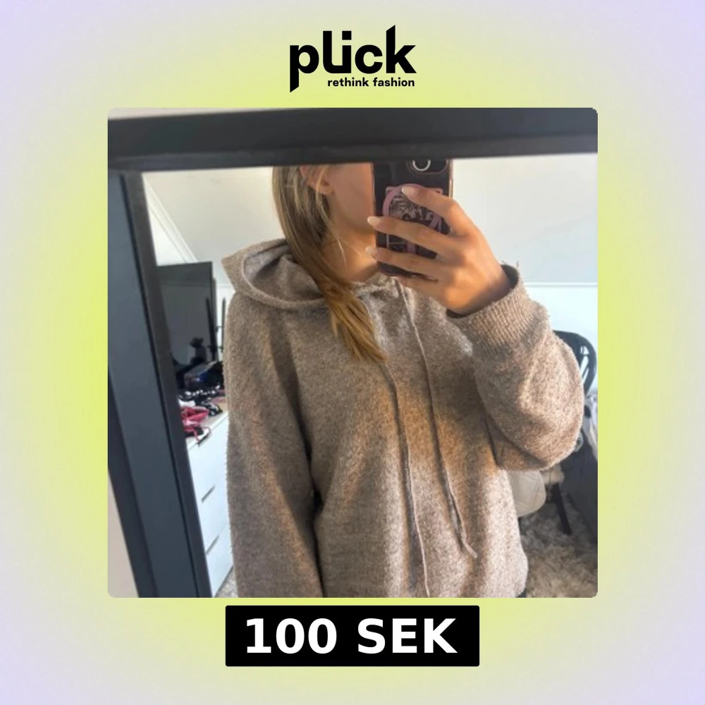 Mysig beige stickad hoodie med huva och snörning. Tröjan har en relaxed fit och långa ärmar med ribbade muddar. Perfekt för kyliga dagar när du vill vara både bekväm och snygg.