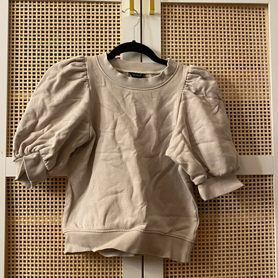 En jättefin beige tröja med puff ärmar som ej har använts eftersom att den är för liten💕