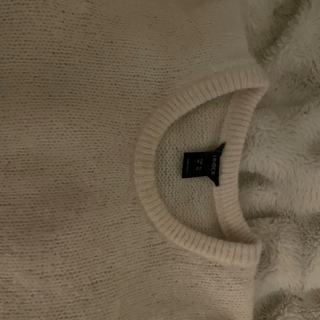 Supermysig beige stickad tröja från Lindex i storlek XS. Tröjan har korta ärmar, rund halsringning och ribbade muddar.
