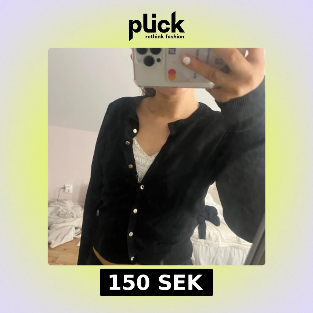 Säljer en stilren svart kofta med guldiga knappar