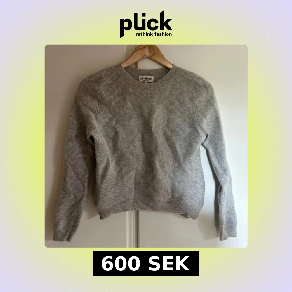 Mysig ljusgrå stickad tröja från Soft Goat i 100% kashmir. Använd en del men i fint skick och väl omhändertagen utöver två små hål på ärmen (se sista bilden), därav priset, men det är inget som märks och går att fixa om man vill. Nypris ca 2800kr