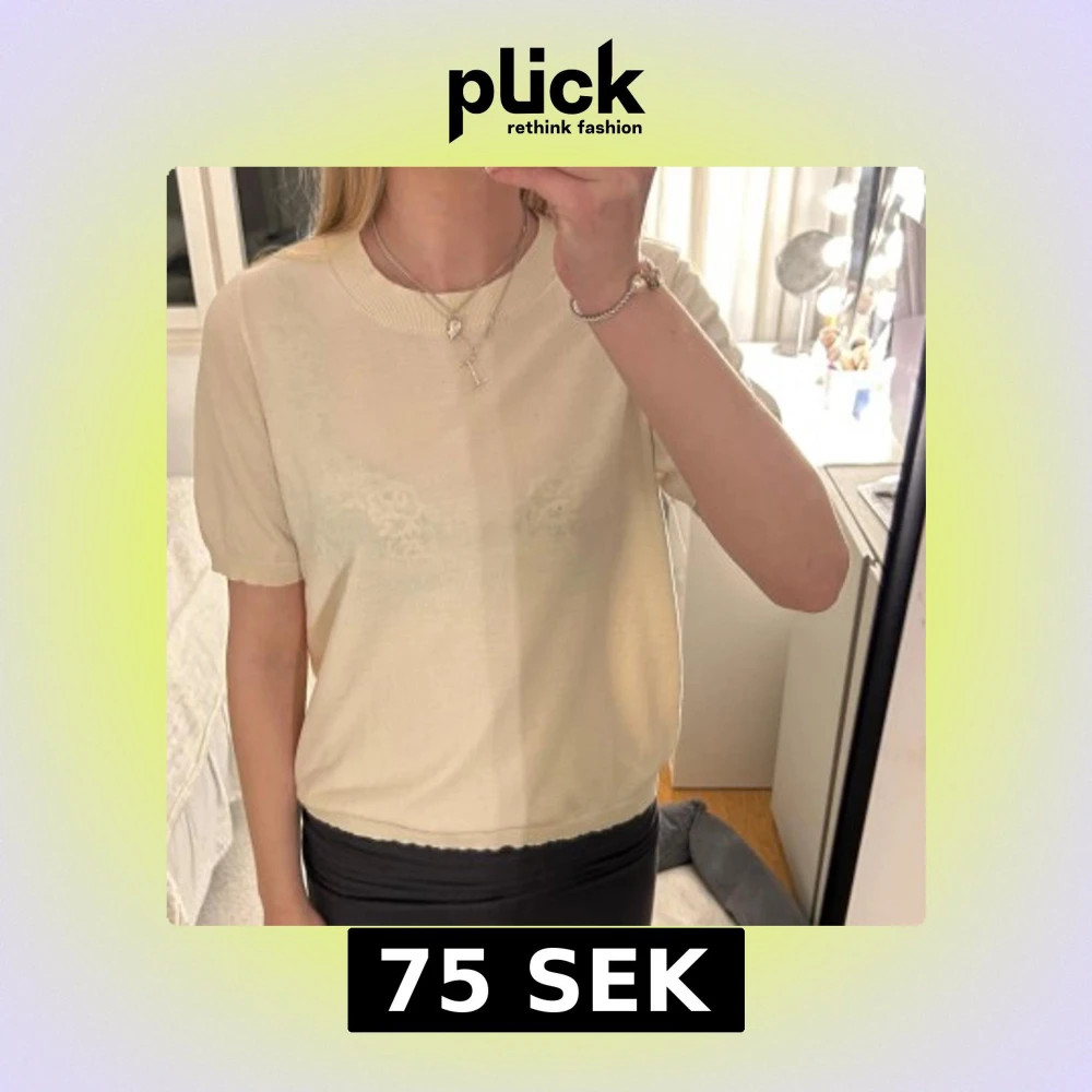 Så snygg finstickad kortärmad tröja 💕 liten blå fläck vid nederkant men inget som märks så mycket❤️
