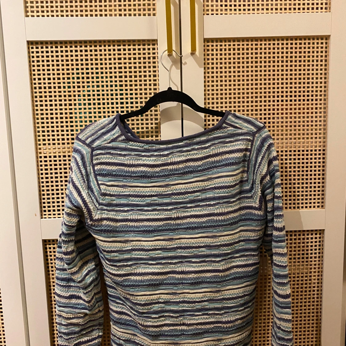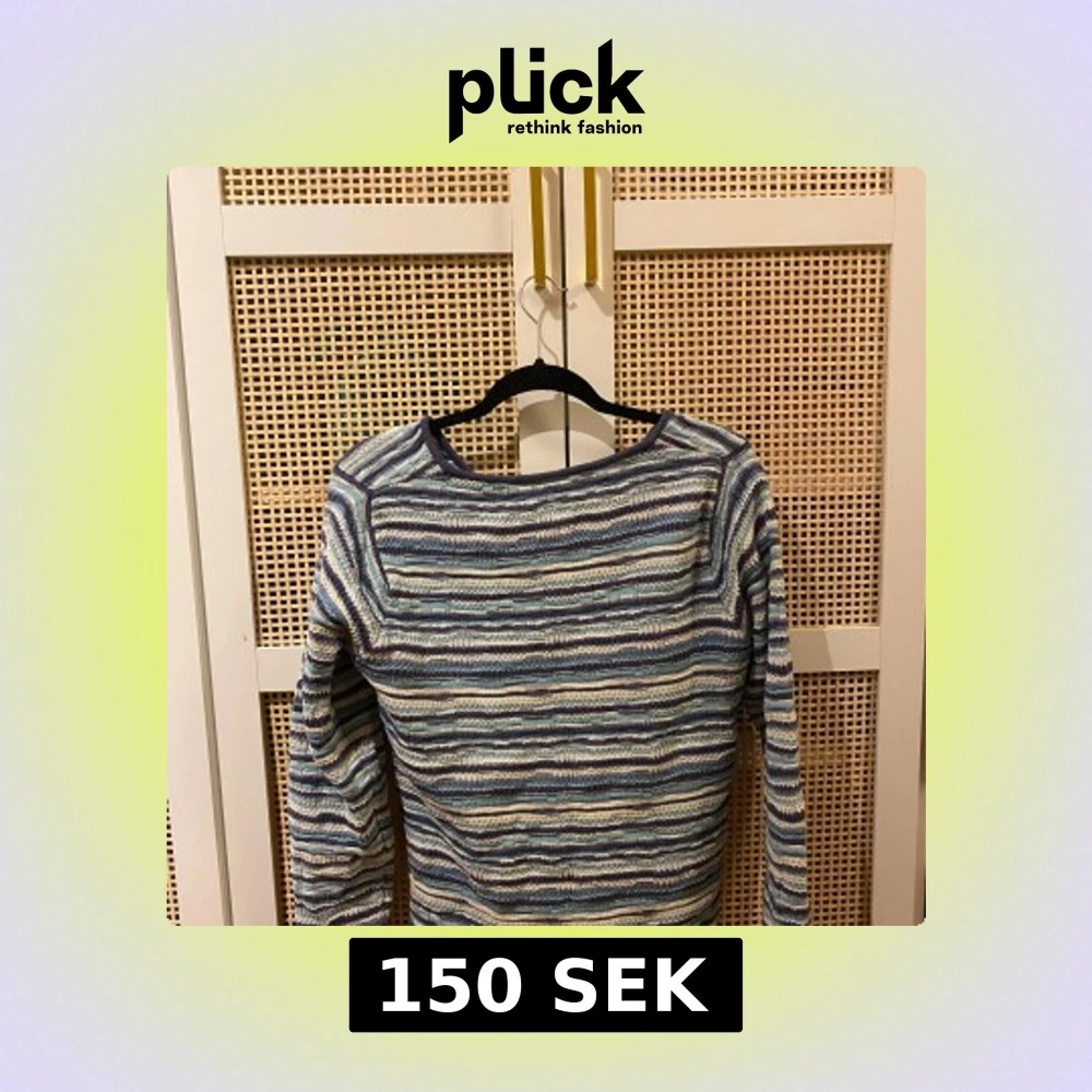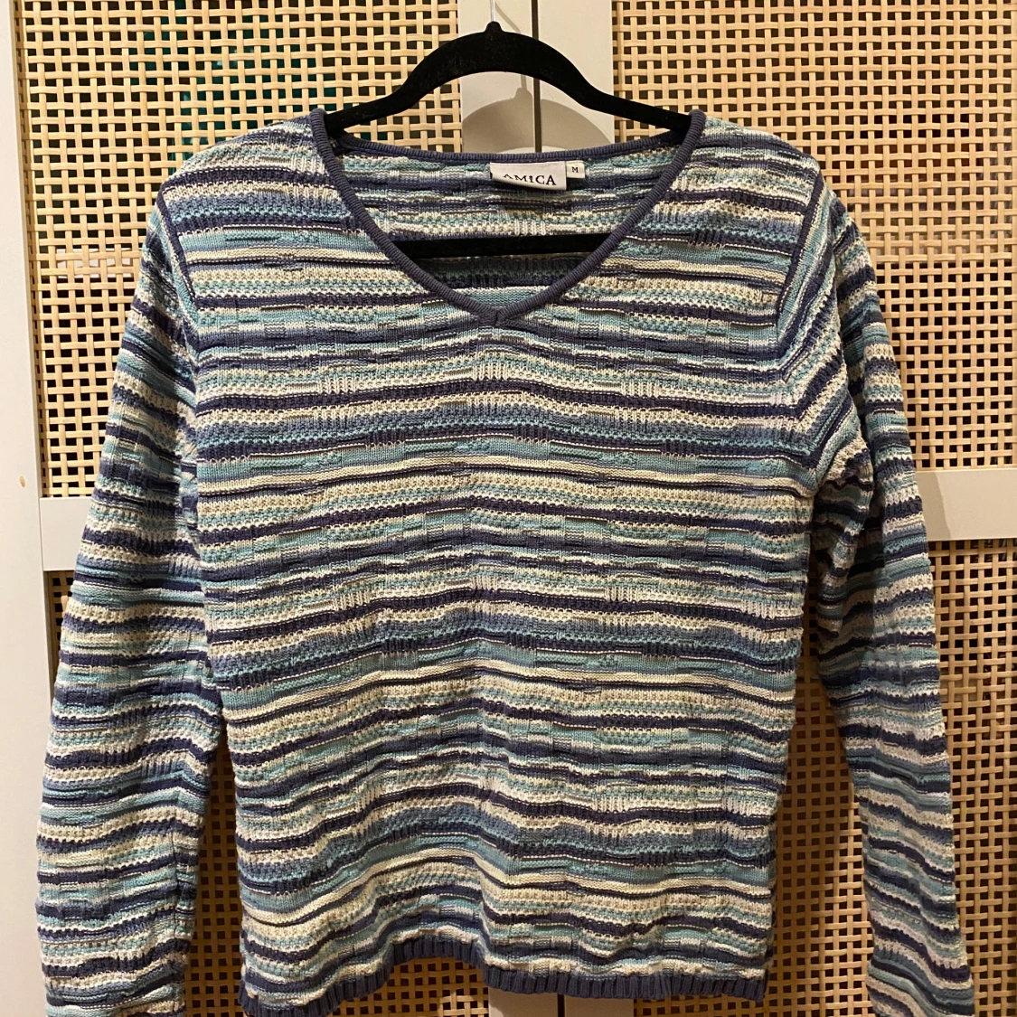 En blå randig stickad tröja i storlek M. Tröjan har ej använts på 8 månader och är ifrån amica