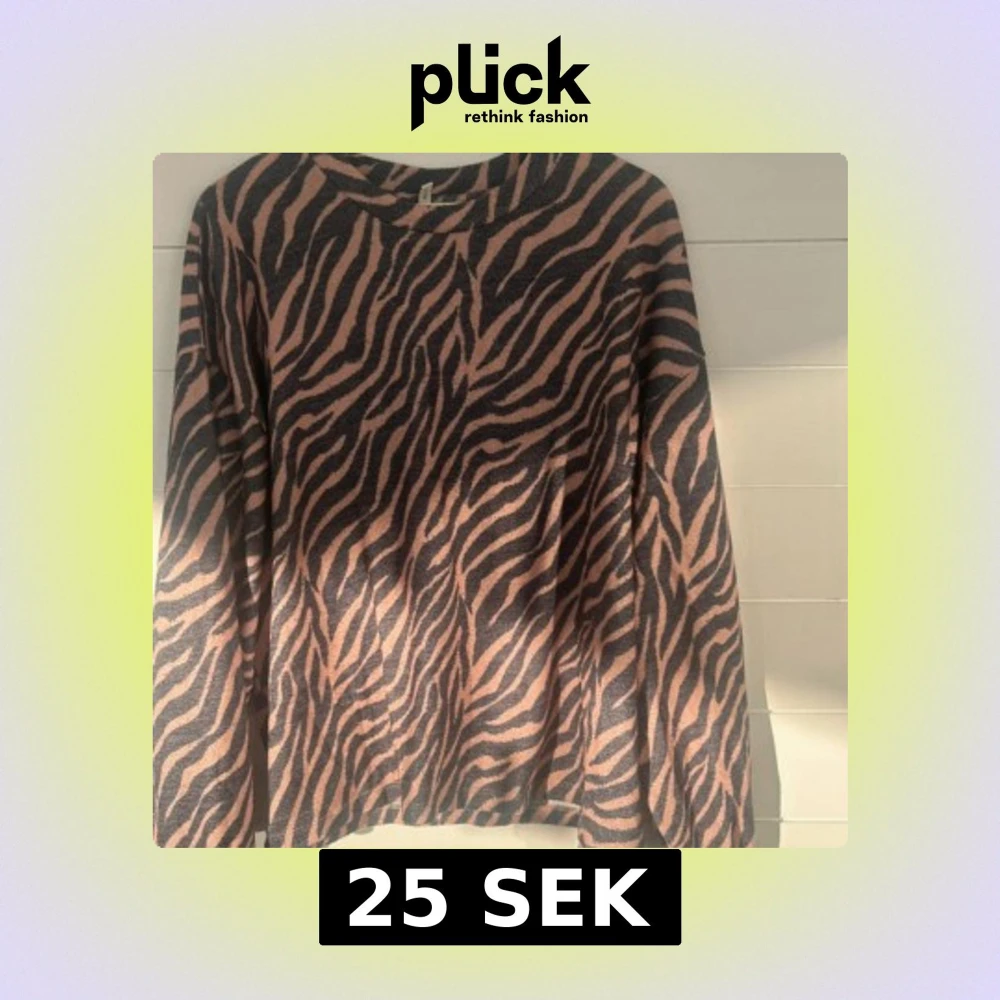 Säljer en snygg långärmad tröja från Nelly.com i storlek M. Tröjan har ett coolt zebramönster i svart och beige, perfekt för dig som vill sticka ut. Mjuk och skön med rund halsringning, passar till både jeans och kjol.