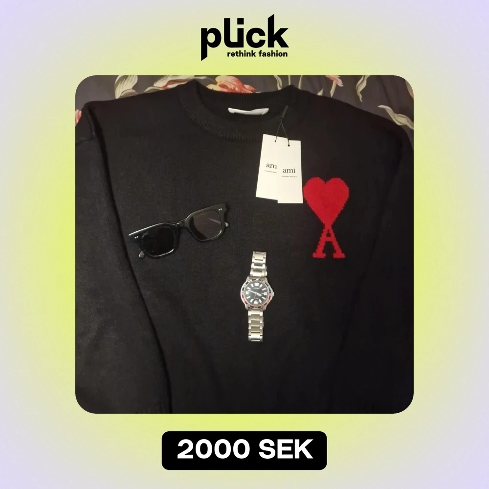 Säljer en snygg svart tröja från Ami Alexandre Mattiussi med ett rött hjärta och bokstaven A på bröstet. Perfekt för en stilren look. Tröjan är i mycket bra skick och tillverkad i Portugal. Passar perfekt för höst och vinter. Den är ny med tags i nyskick. Priset kan diskuteras vid snabb äffär😊🌟