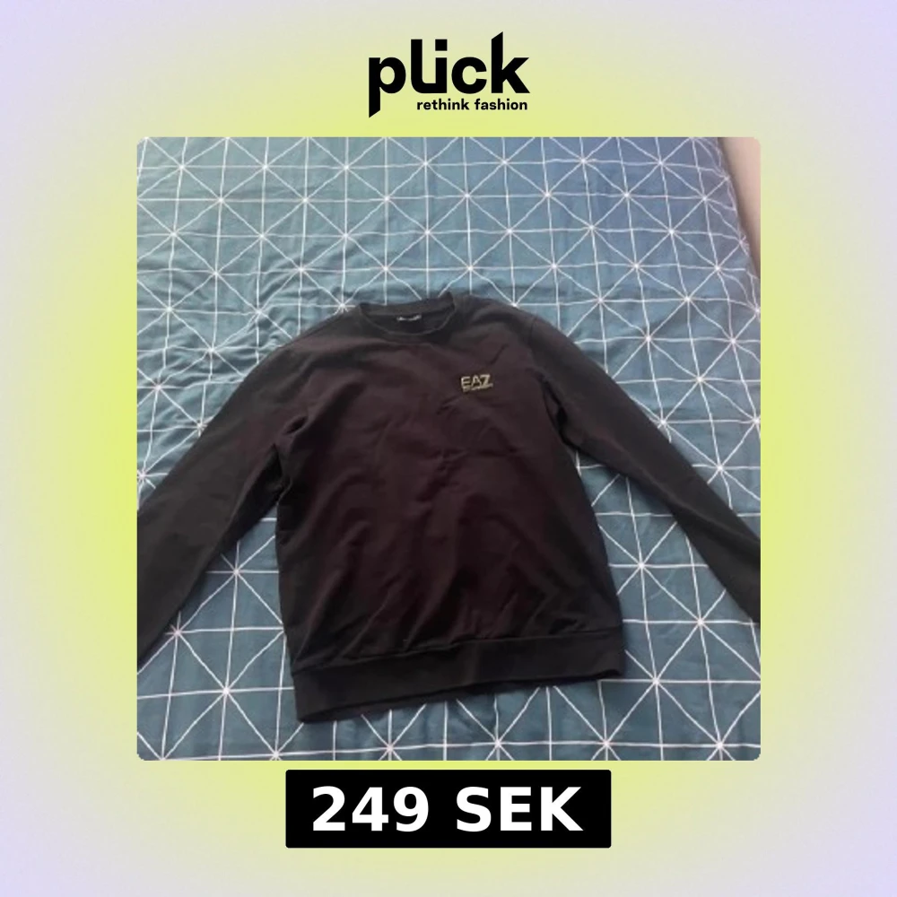 Jag behöver tyvärr sälja denhära efterlängtande sweatshirten pågeund av att den var för liten för mig men till dig som vill ha rn snygg stil passar det perfekt. Svart sweatshirt från EA7 med gul logotyp på bröstet och diskreta gula ränder i nacken. Tröjan har rund hals, långa ärmar och är gjord i mjuk bomullsmix. Perfekt för en chill och stilren look. Och om du har frågor så kan du meddela mig direkt(: (använd 1-3 gånger)