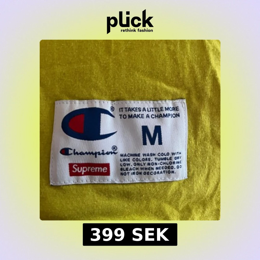 Säljer en gul långärmad tröja från Champion x Supreme. Inköpt direkt från supreme under 2017/2018. Inte använd mer än ett fåtal gånger