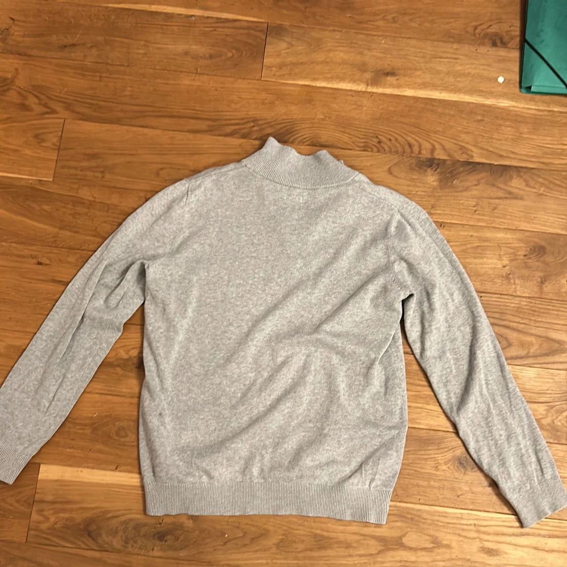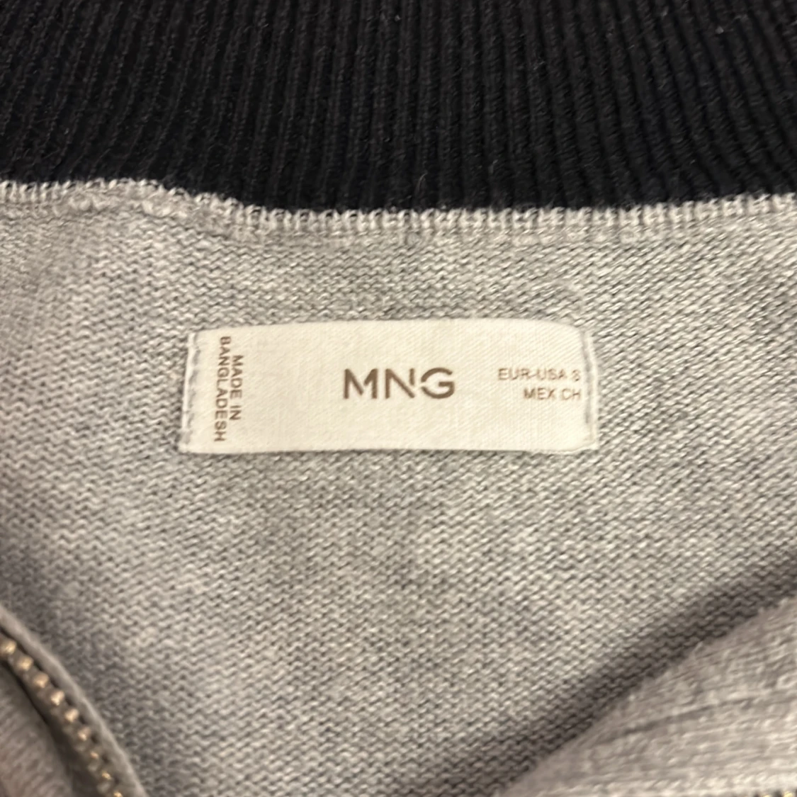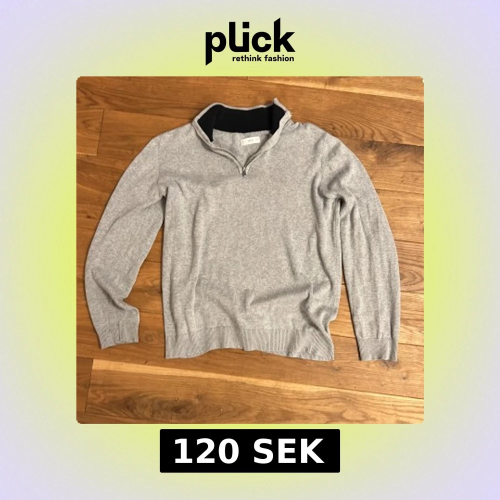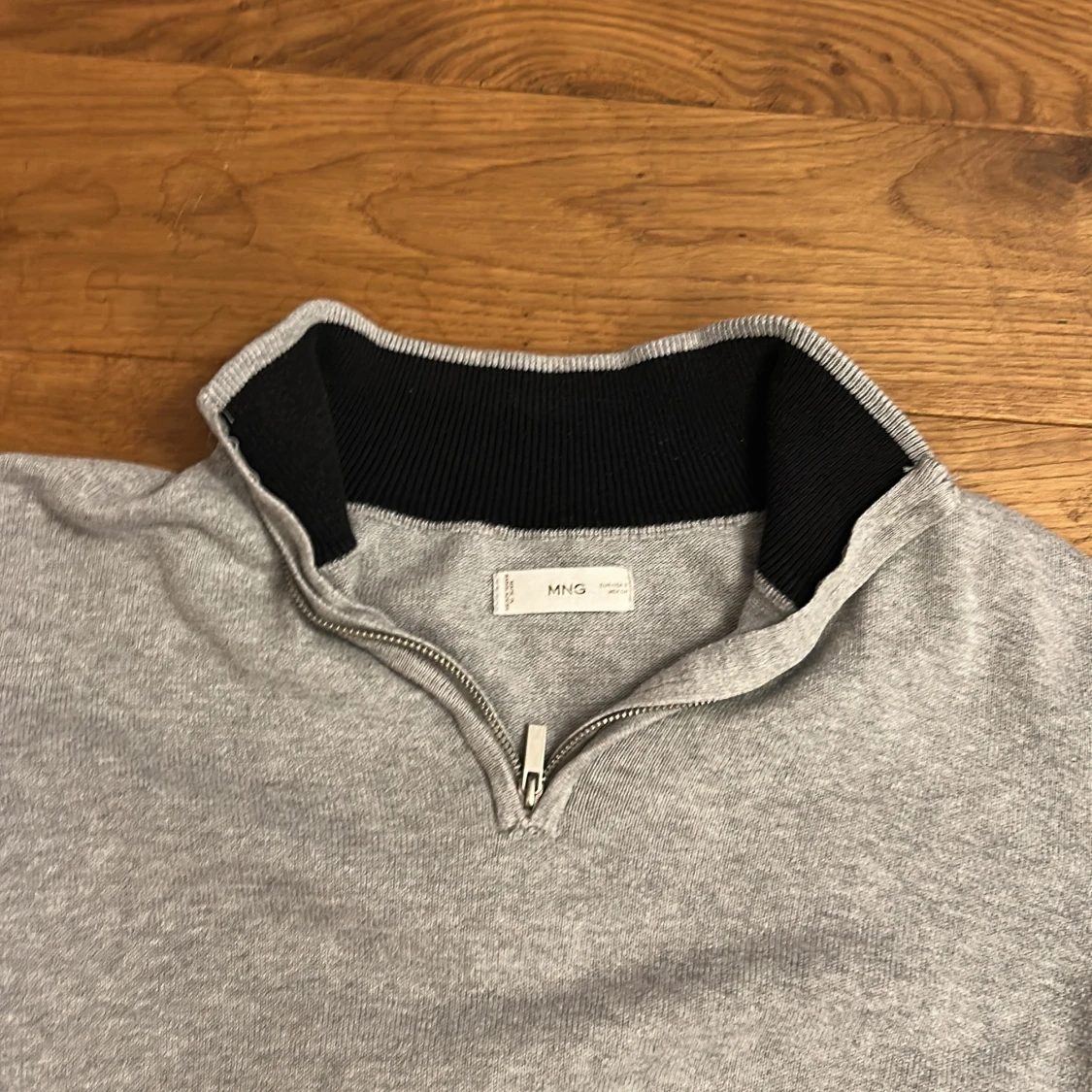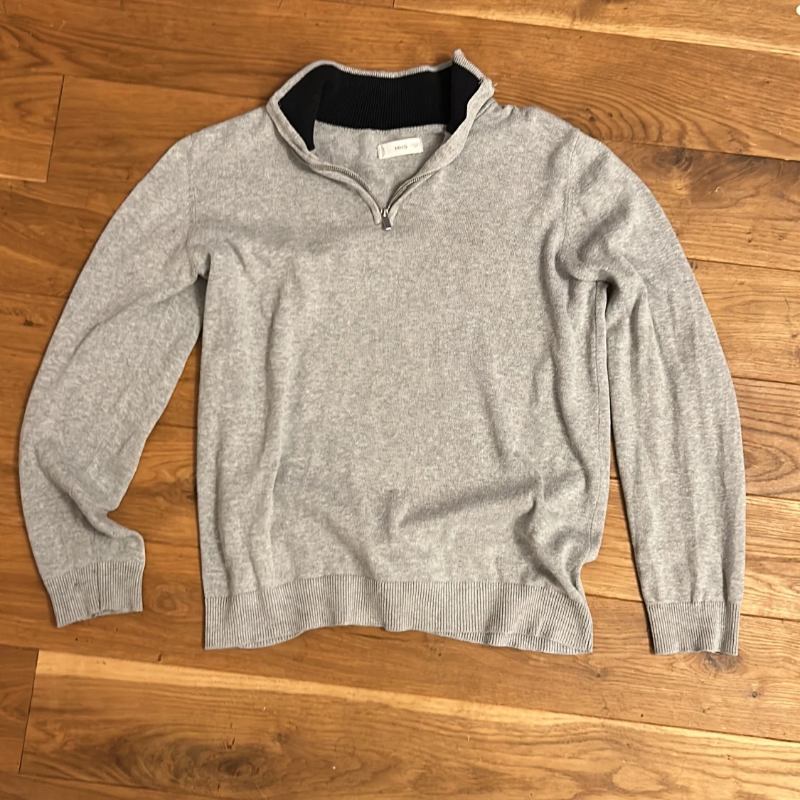 Skit snygg stickad halfzip från mango, grå överallt förutom kragen som är marinblå. Storlek S men sitter typ som XS. Passar runt 170cm