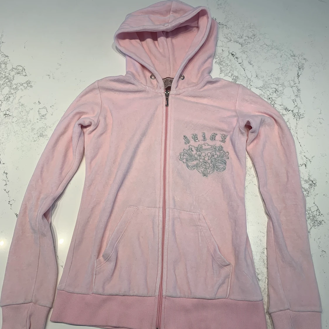 Säljer denna super söta baby rosa juicy couture tröja💕säljer den pågrund av att den är för liten!💖 Den är i storlek S men är ganska liten.