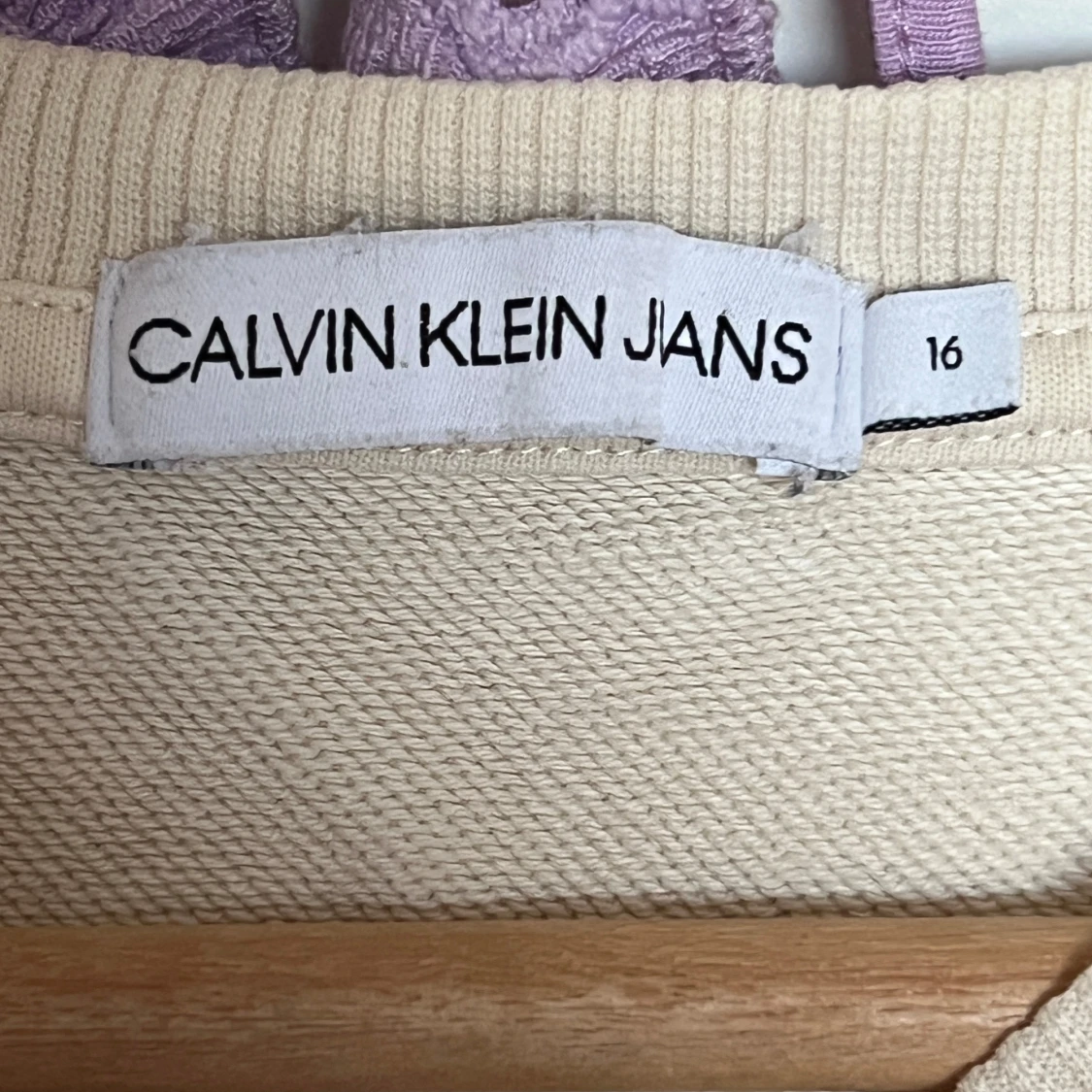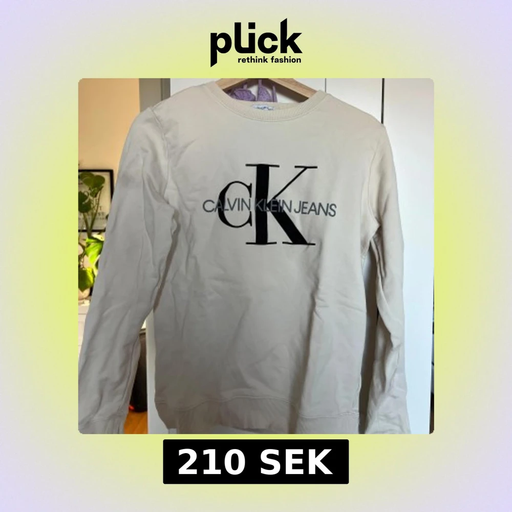 Säljer en vit sweatshirt från Calvin Klein Jeans med stor svart CK-logga och text på bröstet. Tröjan har rund halsringning och långa ärmar. Nypris 599