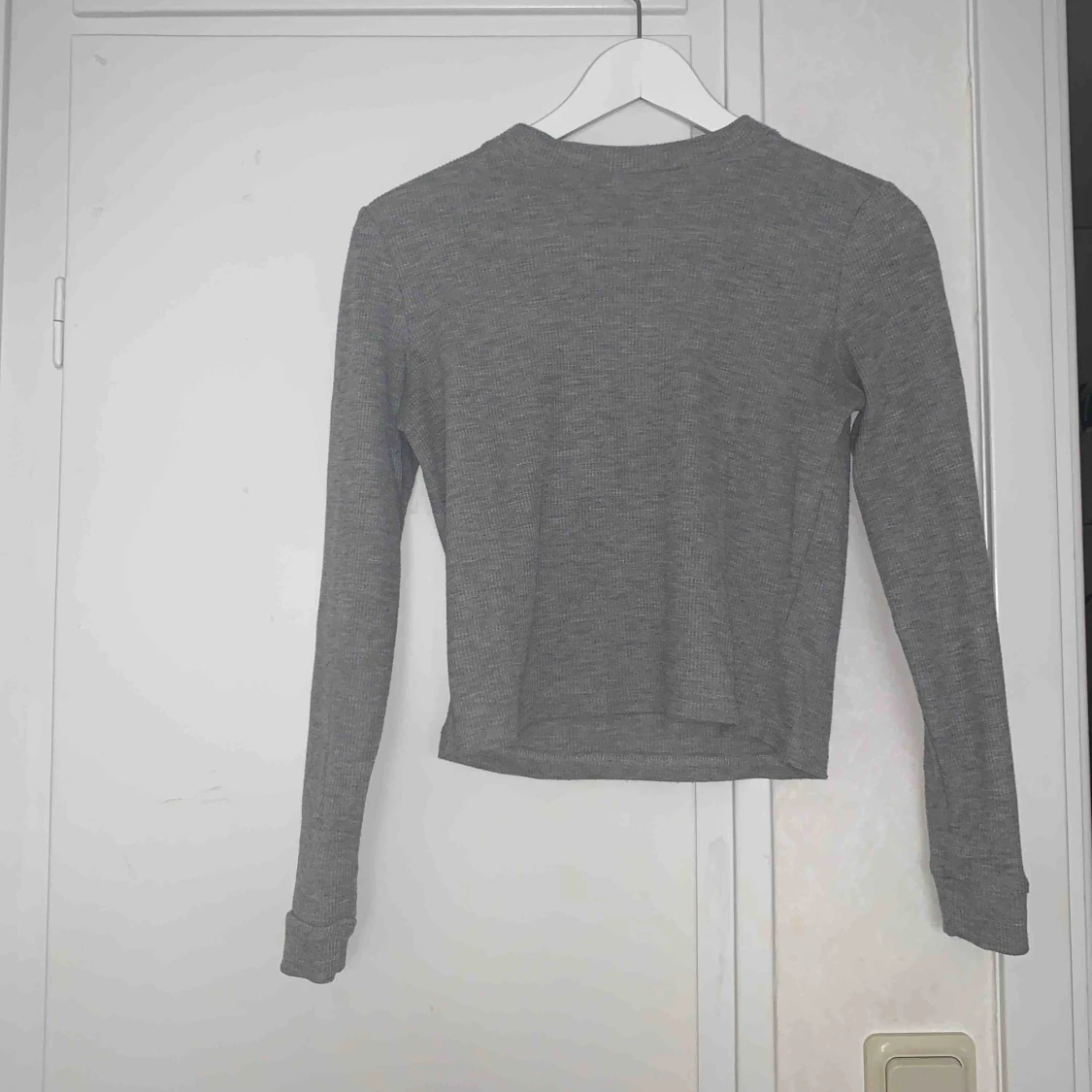 grå ribbad tröja från Monki, jätteskön o snygg! Lite kortare modell, säljer pga använder ej köpare står för frakt❤️
