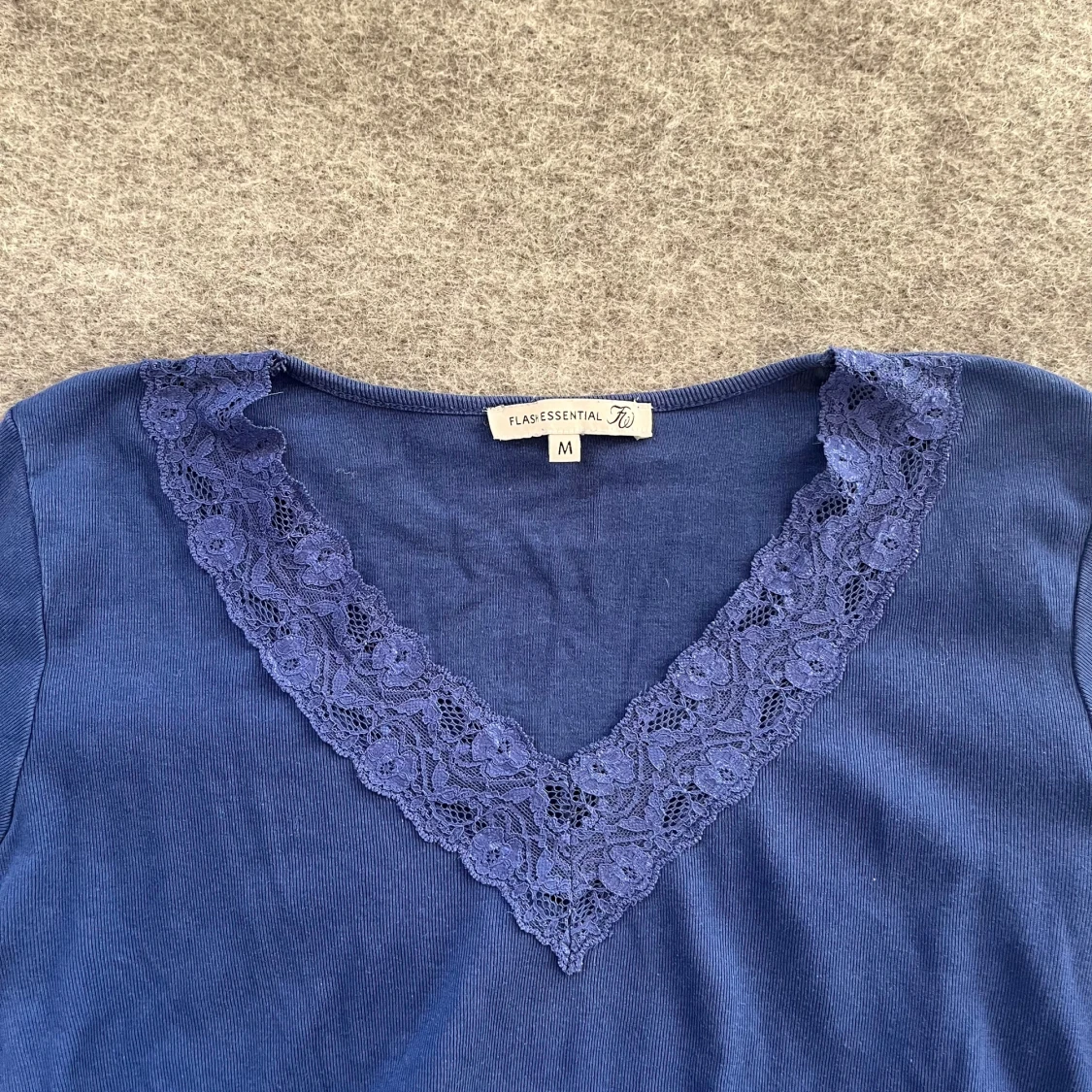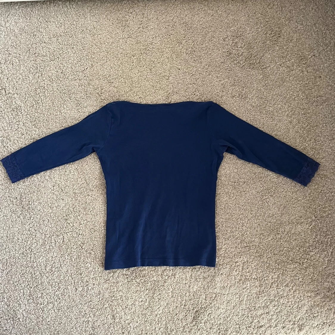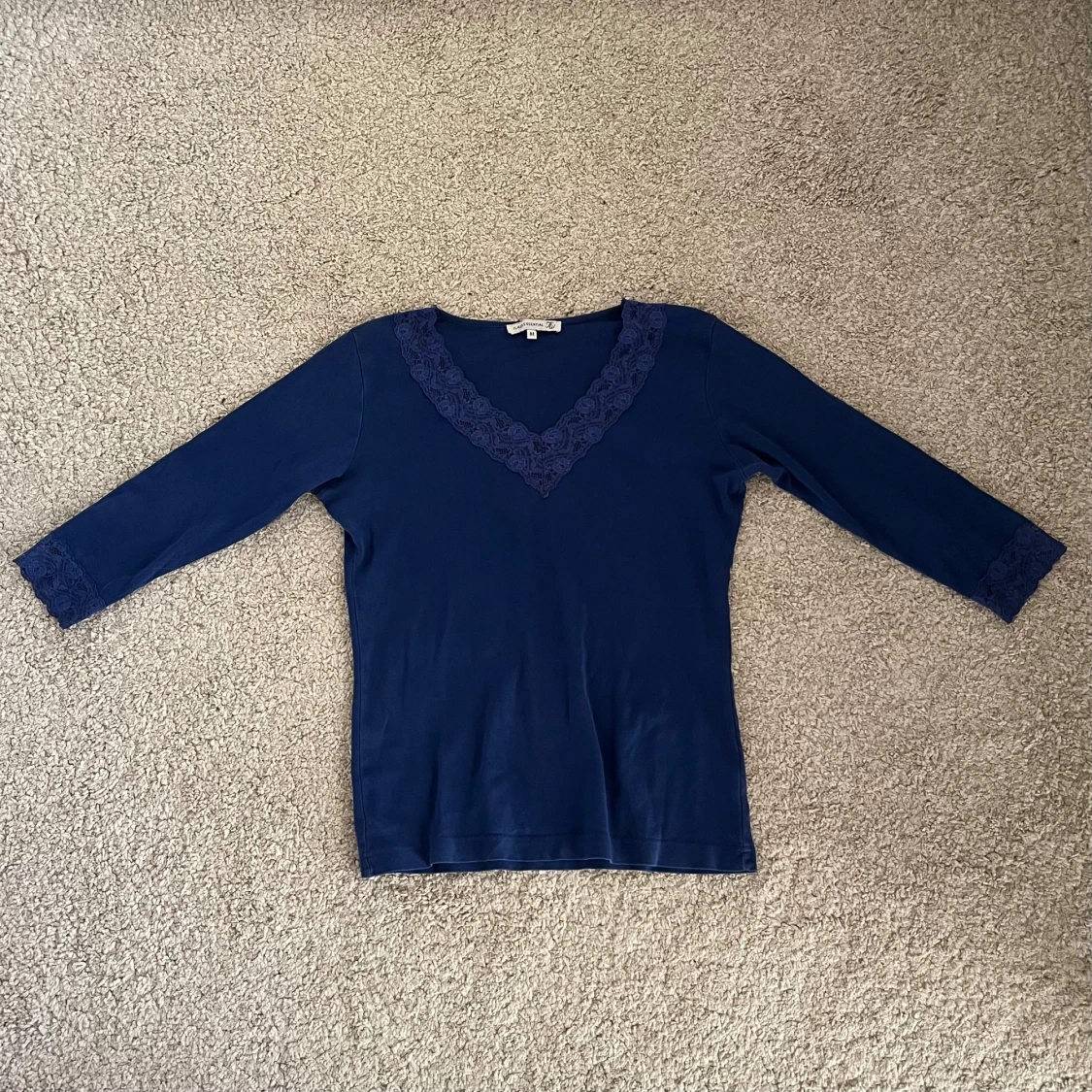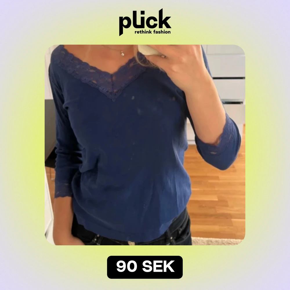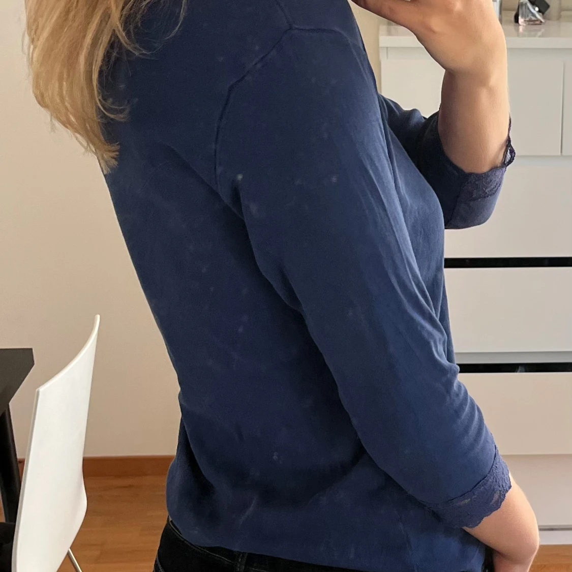 Mörkblå v-ringad tröja med spets i storlek m (obs smutsig spegel)💕