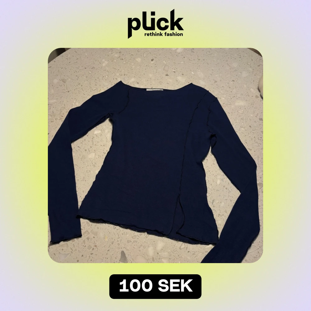 Säljer en stilren mörkblå långärmad topp från Weekday. Perfekt för en avslappnad look med sin enkla design och mjuka material. Liten slits ner till. Passar bra till både jeans och kjol.