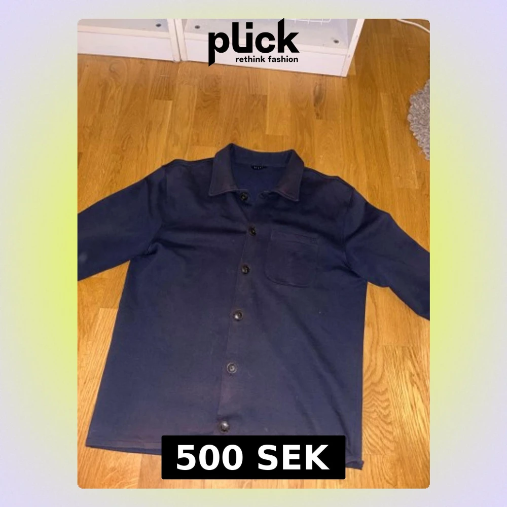 Snygg mörkblå overshirt från Riley i storlek M. Skjortan har klassisk krage, knäppning med svarta knappar hela vägen och en bröstficka. Materialet är mjukt och känns som bomull, perfekt för lager-på-lager. Långärmad och stilren design.