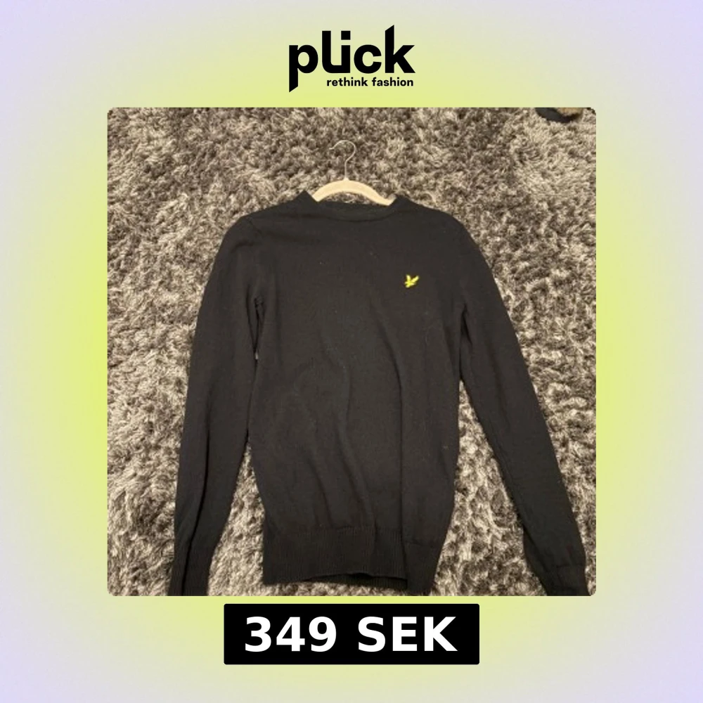 Mörkblå stickad tröja från Lyle & Scott med klassisk gul logga på bröstet. Tröjan har rund halsringning, ribbade muddar och är långärmad. Perfekt för dig som gillar stilrena plagg. Köpte den för 800 kr på mq och den är i väldigt bra skick