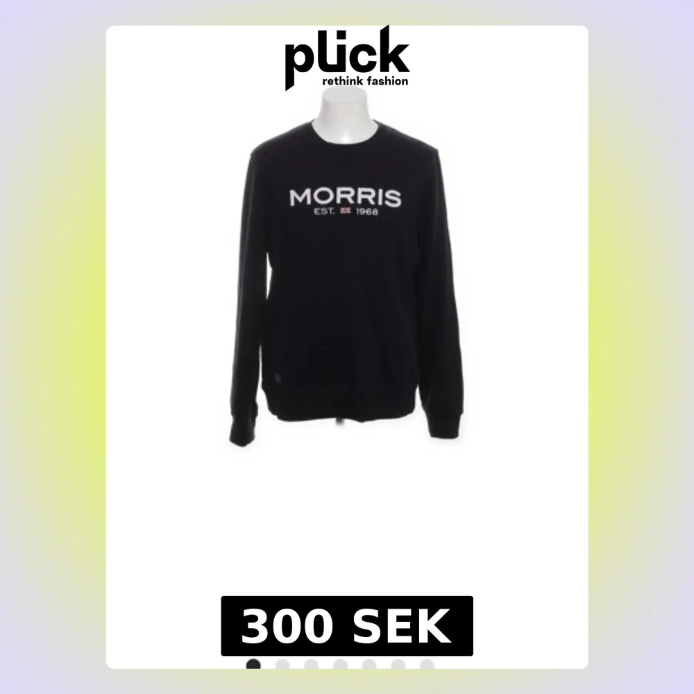 Svart sweatshirt från Morris med vit logotyp och text 'MORRIS EST. 1968' på bröstet. Tröjan har rund hals, långa ärmar och ribbade muddar vid ärmslut och nederkant. Tillverkad i mjuk bomullsmix som är skön att bära.
