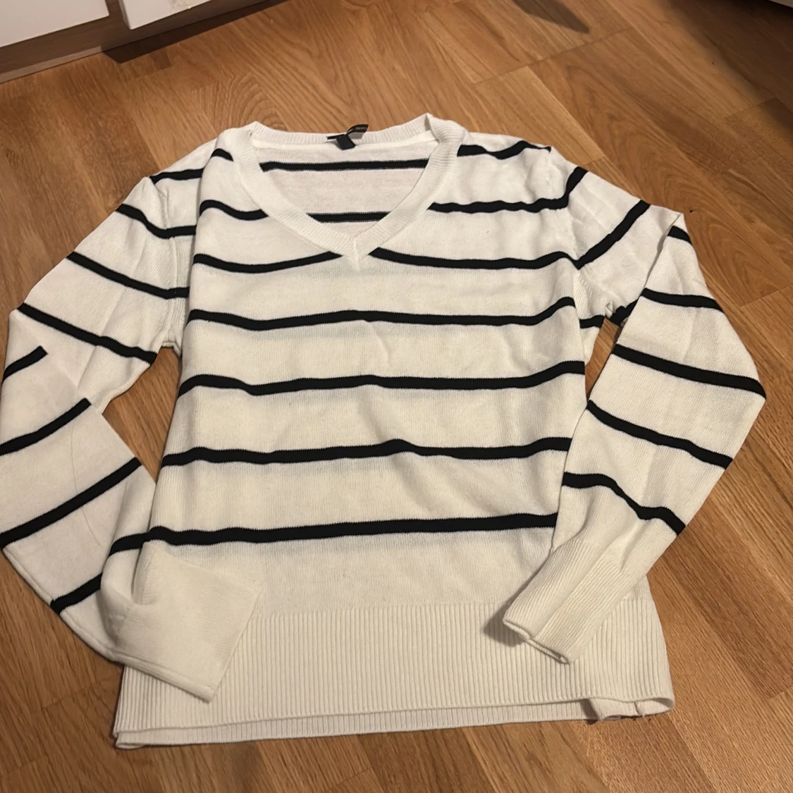 Vit och svart randig stickad tröja