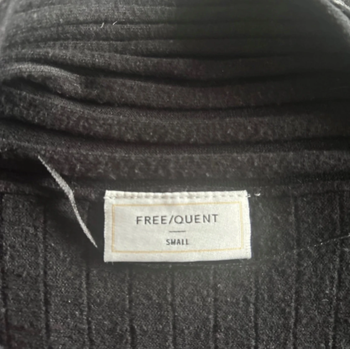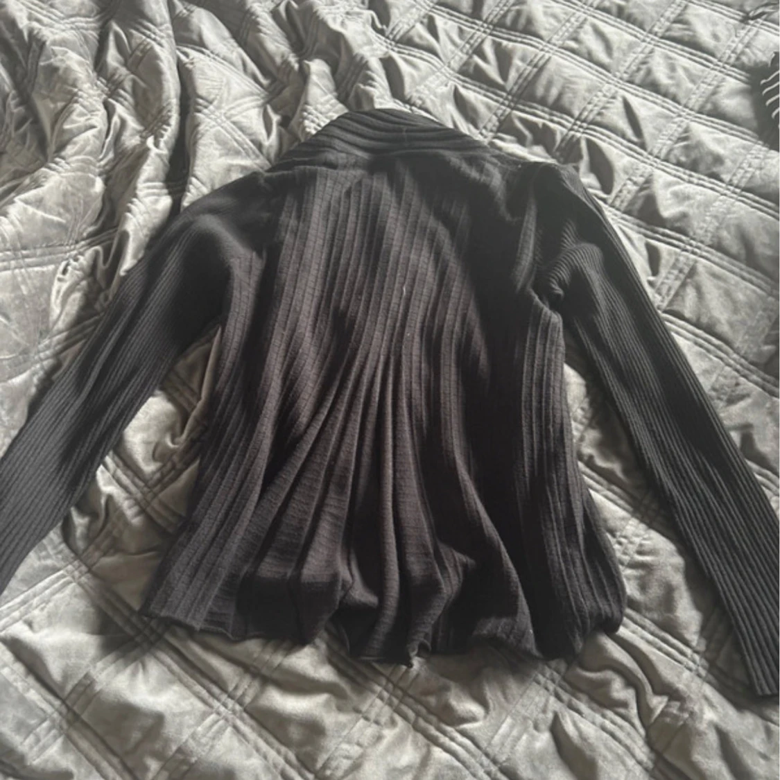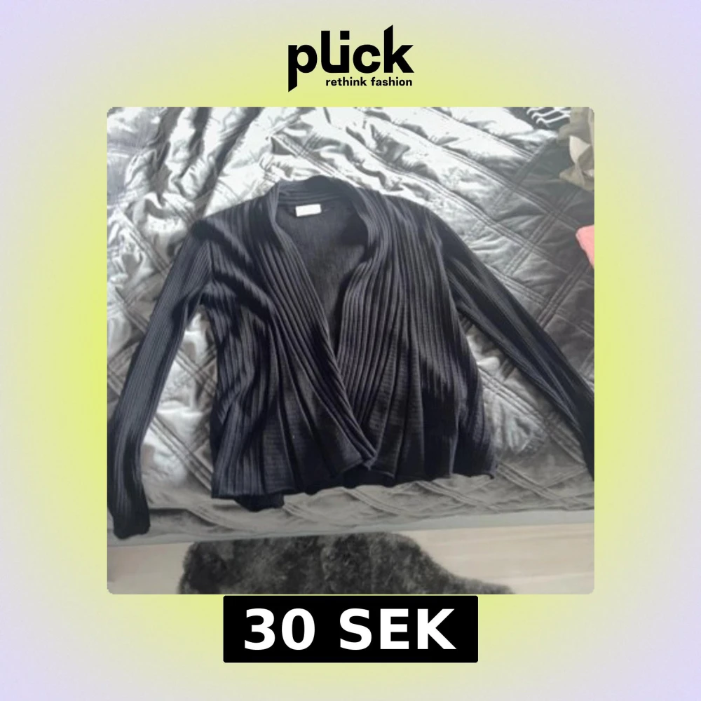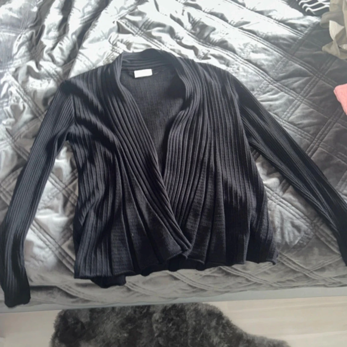 Svart kofta från Freequent i storlek S. Den har ett omlottliknande fall framtill och är ribbad i materialet, vilket ger en snygg struktur. Långärmad och i mjuk stickad kvalitet, perfekt för lager på lager. Enkel att matcha med olika outfits.