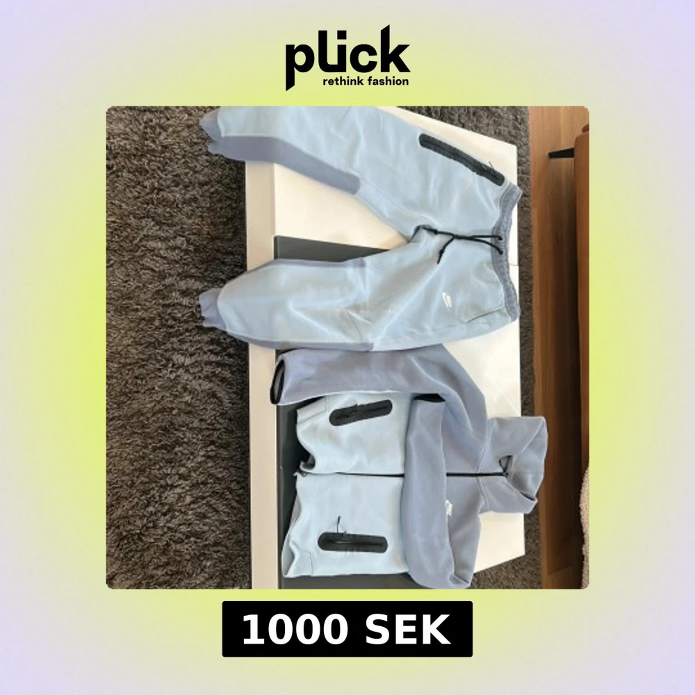 Säljer en ljusblå hoodie och matchande byxor från Nike. Setet har svarta dragkedjor och detaljer, samt en justerbar huva. Perfekt för en avslappnad stil. 🌀priset kan diskuteras.