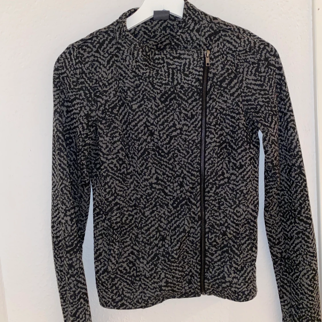 En tröja som även går att öppna och använda som kofta. Strl xs från object. Häftig färg med snyg kromad dragkedja.