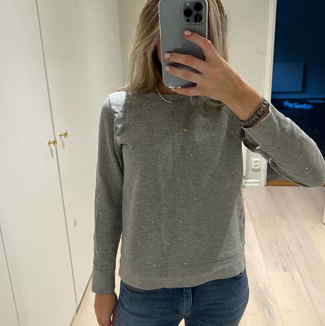 Fin tröja med små paljetter i metall (ish) på som gör tröjan liten roligare🤍 Storlek medium men passar XS-M! Lindex kollektion med HOLLY & WHYTE⭐️ Använd kanske Max 2 gånger