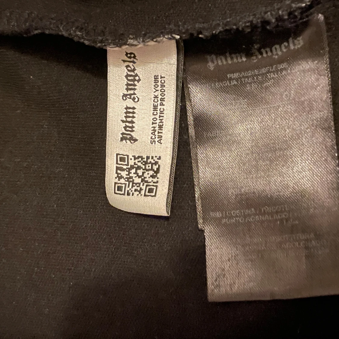 Svart hoodie från Palm Angels med vita ränder längs ärmarna och vit dragkedja framtill. Tröjan har hög krage och logotypen broderad på bröstet. Snygg streetwear-look, perfekt för dig som gillar trendiga märken och sportig stil. Den är copy