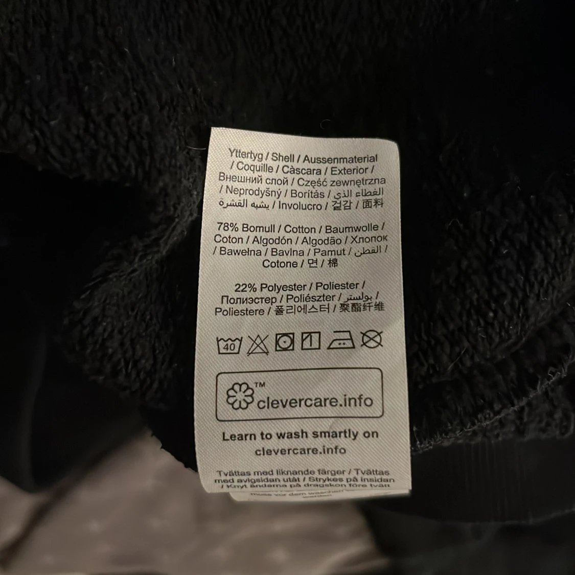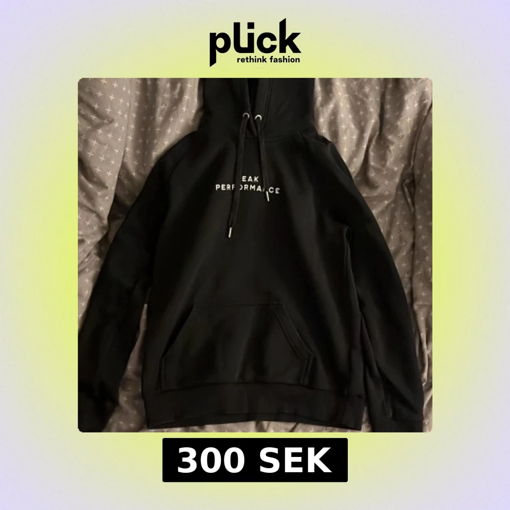 Svart hoodie från Peak Performance med vit broderad logga på bröstet. Klassisk känguruficka framtill, snörning i huvan och mjukt material i bomull och polyester. Perfekt för chill dagar eller när du vill ha en clean streetstyle. Storlek L men är mindre i storleken så passar xs/s. Använd max 4 ggr