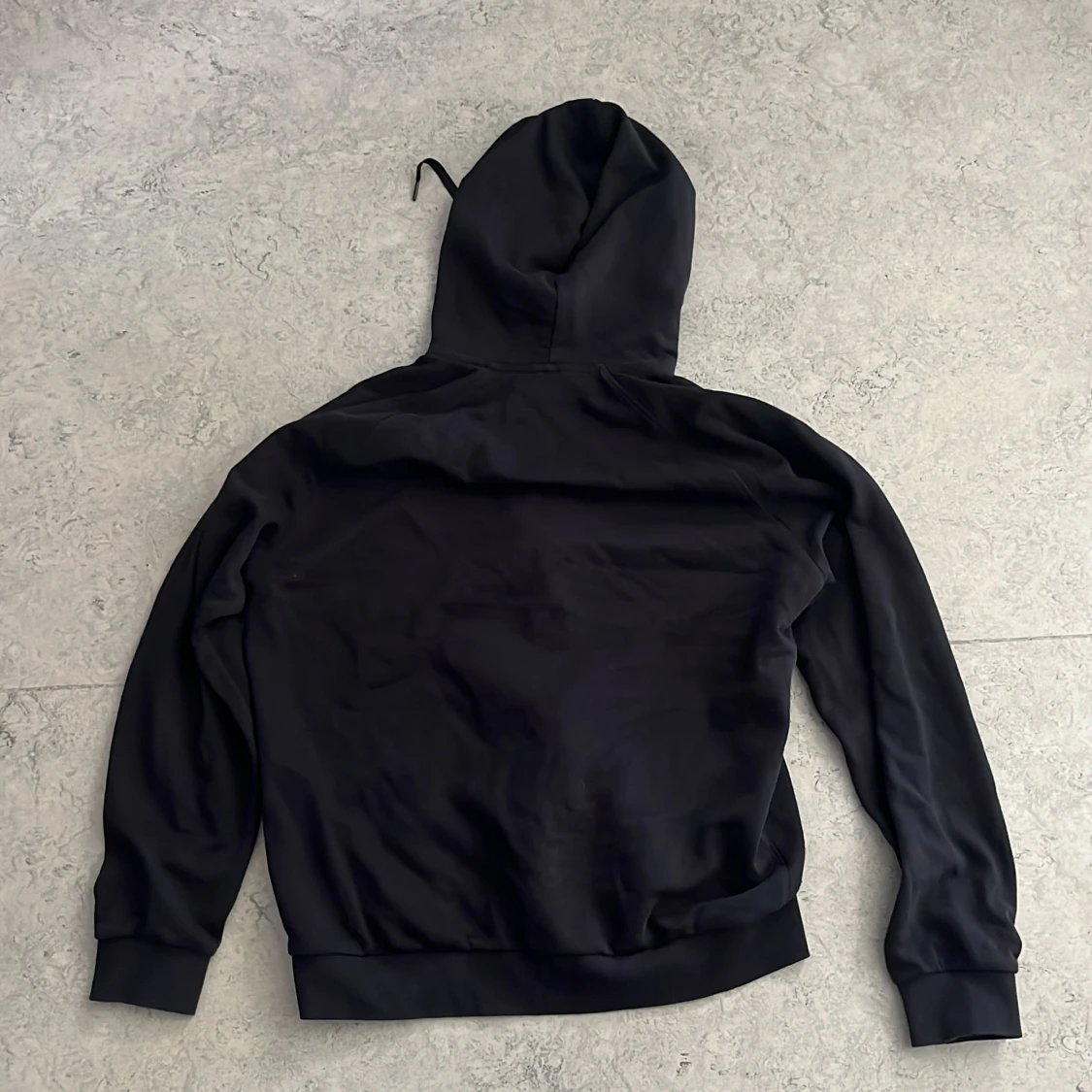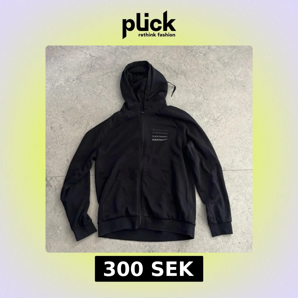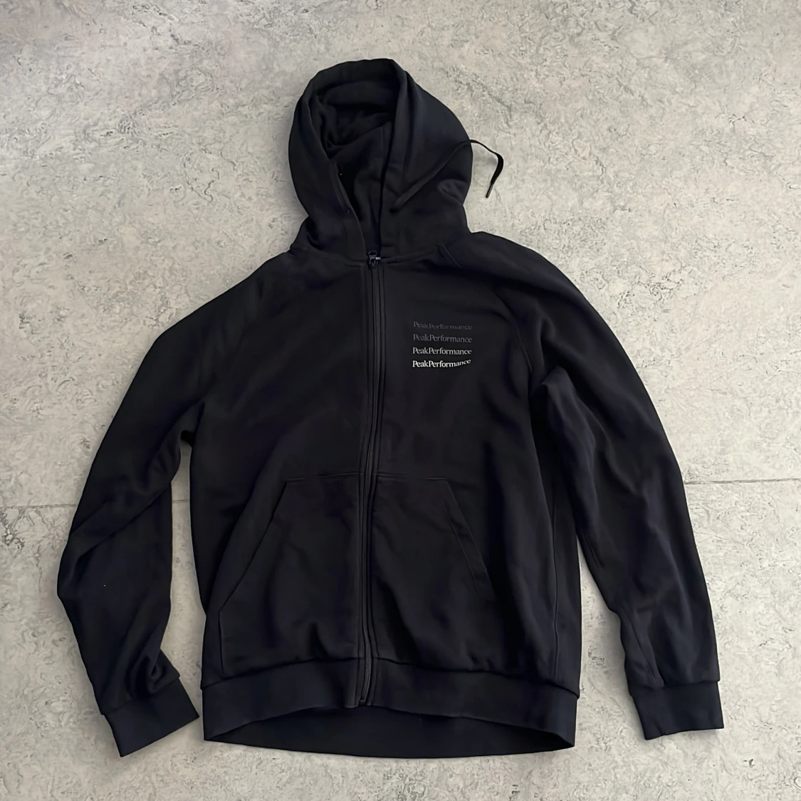 Svart hoodie från Peak Performance i storlek L. Tröjan har dragkedja, huva med snörning och fickor. Perfekt för chill dagar eller när du vill ha en clean streetstyle.