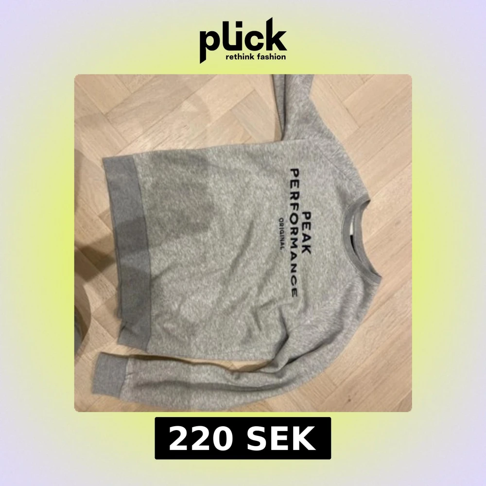 Säljer en stilren grå sweatshirt från Peak Performance med svart logga tryckt på bröstet. Tröjan har rund hals, ribbade muddar och är tillverkad i mjuk bomullsblandning. Perfekt för en chill och sportig look.
