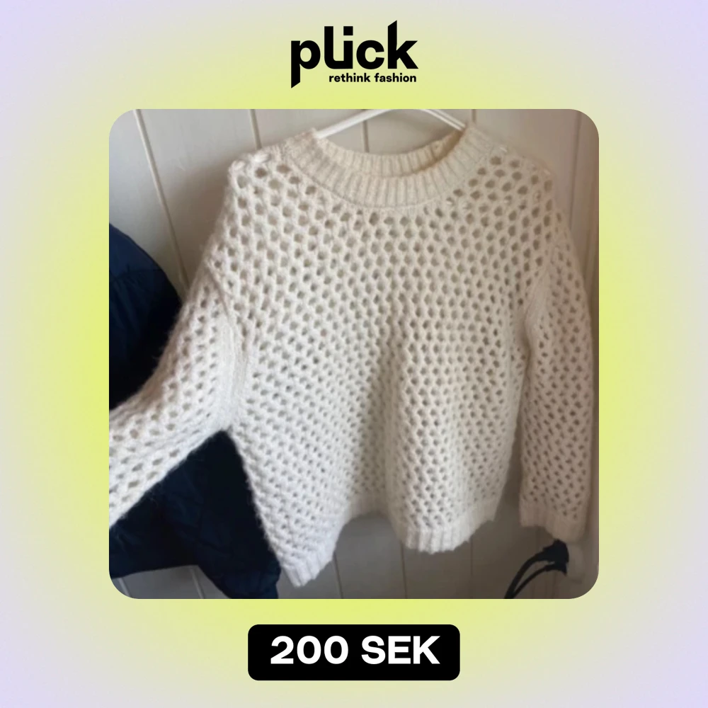 Säljer en superfin vit stickad tröja från Rita Ora x Primark. Den har ett snyggt hålmönster. Tröjan är i storlek XS