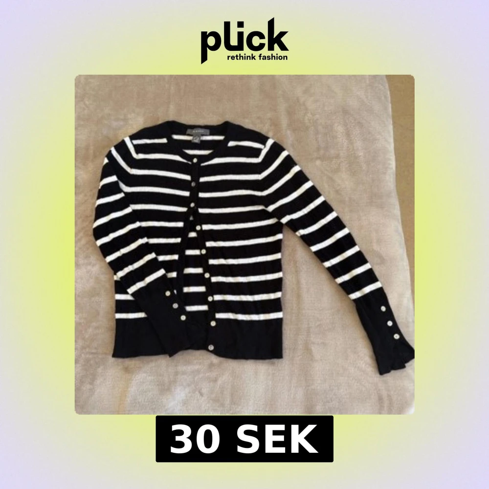 Svart och vit randig kofta från Primark i storlek XS. Koftan har rund hals, långa ärmar och knappar hela vägen framtill samt vid ärmsluten. Mjuk och tunn, perfekt för lager-på-lager. Snyggt mönster med breda ränder och klassisk look.