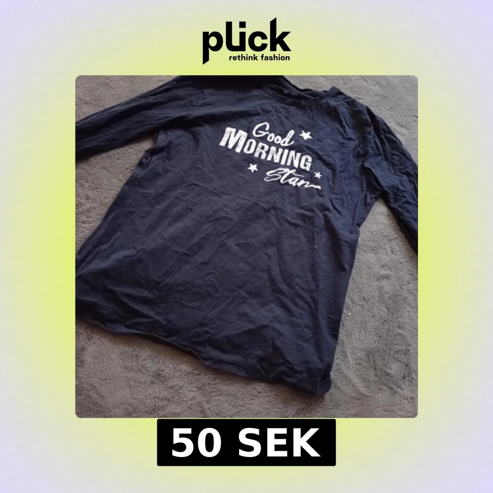 Säljer en blå långärmad tröja från Esmara med texten 'Good Morning Star' i vitt på framsidan. Perfekt för en avslappnad stil. Tröjan är gjord i ett mjukt material som känns skönt mot huden.