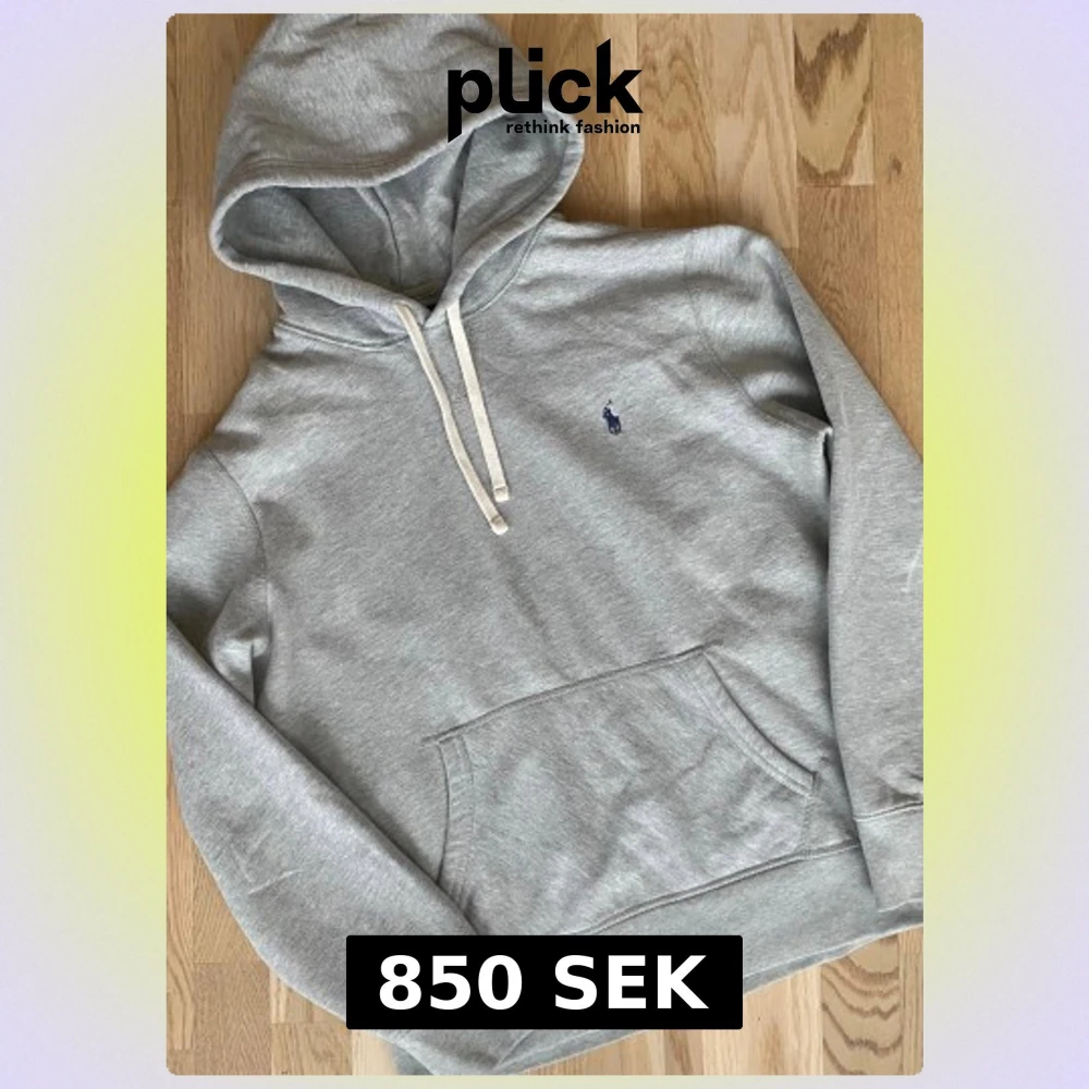 Snygg grå hoodie från Polo Ralph Lauren med klassisk blå logga på bröstet. Tröjan har huva med vita snören och en stor magficka. Passformen är normal och ärmarna är långa. Tröjan använd och tvättad någon enstaka gång, den var tyvärr för stor till min son. Upplever att den passar en kille på ca 180-185 cm. Givetvis äkta och köpt nu i höst.