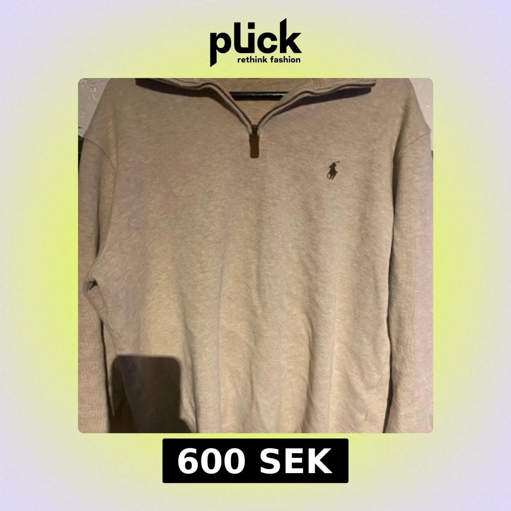 Säljer en stilren beige tröja från Polo Ralph Lauren med dragkedja vid halsen. Tröjan har en broderad logotyp på bröstet och långa ärmar. Perfekt för en avslappnad och snygg look.