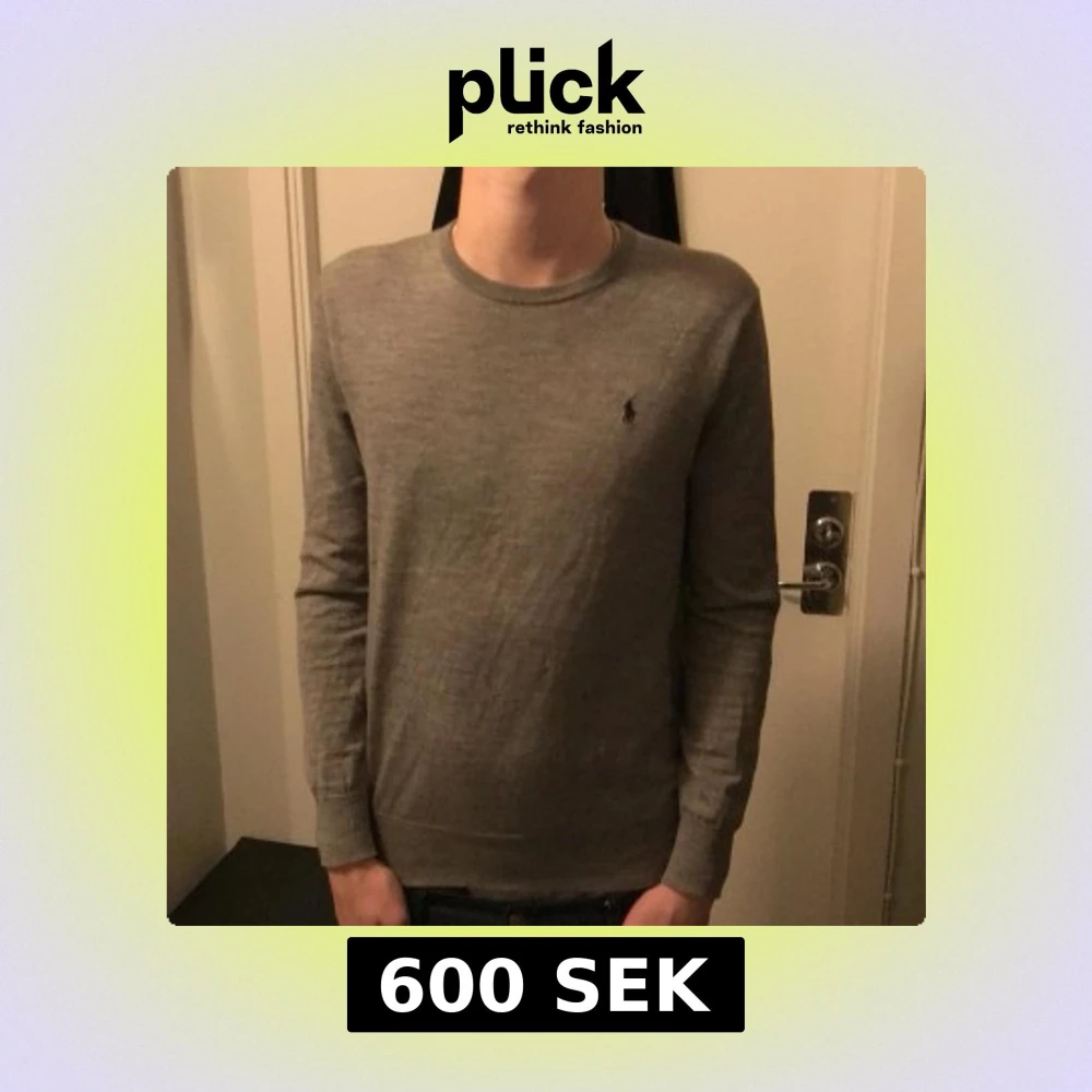 Säljer en stilren tun stickad grå tröja från Ralph Lauren