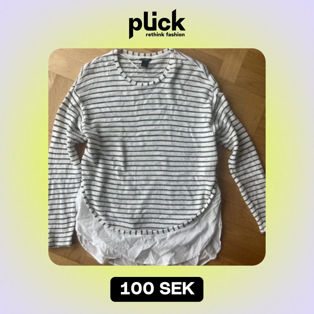 Blå- och vitrandig stickad tröja från Lindex i storlek L. Passar perfekt till hösten!