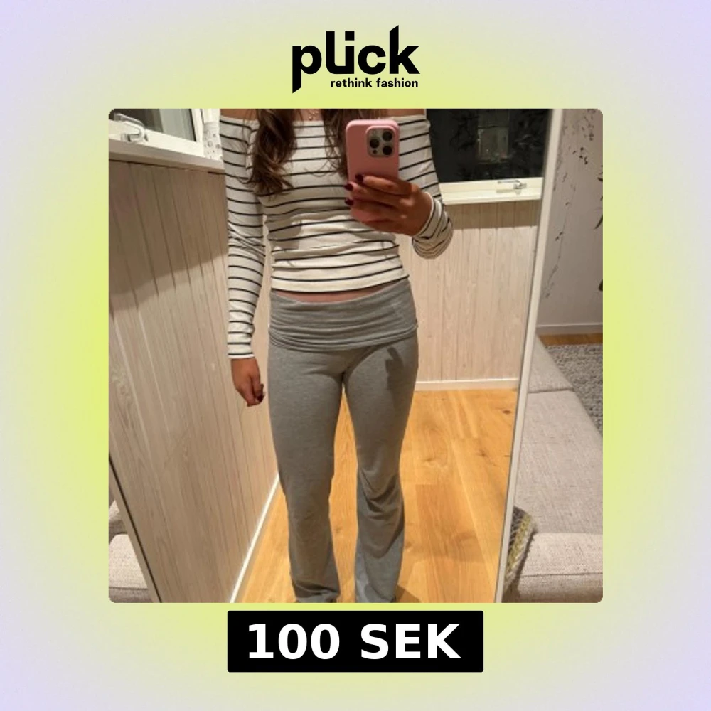 Säljer en vit och svart randig offshoulder topp från Gina Tricot. Toppen har långa ärmar och en tight passform.💗