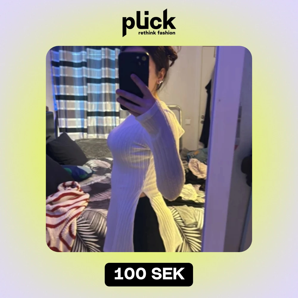Säljer en stilren vit ribbad tröja som är perfekt för både vardag och fest. Tröjan har en klassisk rund hals och långa ärmar, vilket gör den superbekväm och lätt att matcha med andra plagg. Den är i bra skick och redo för en ny ägare!