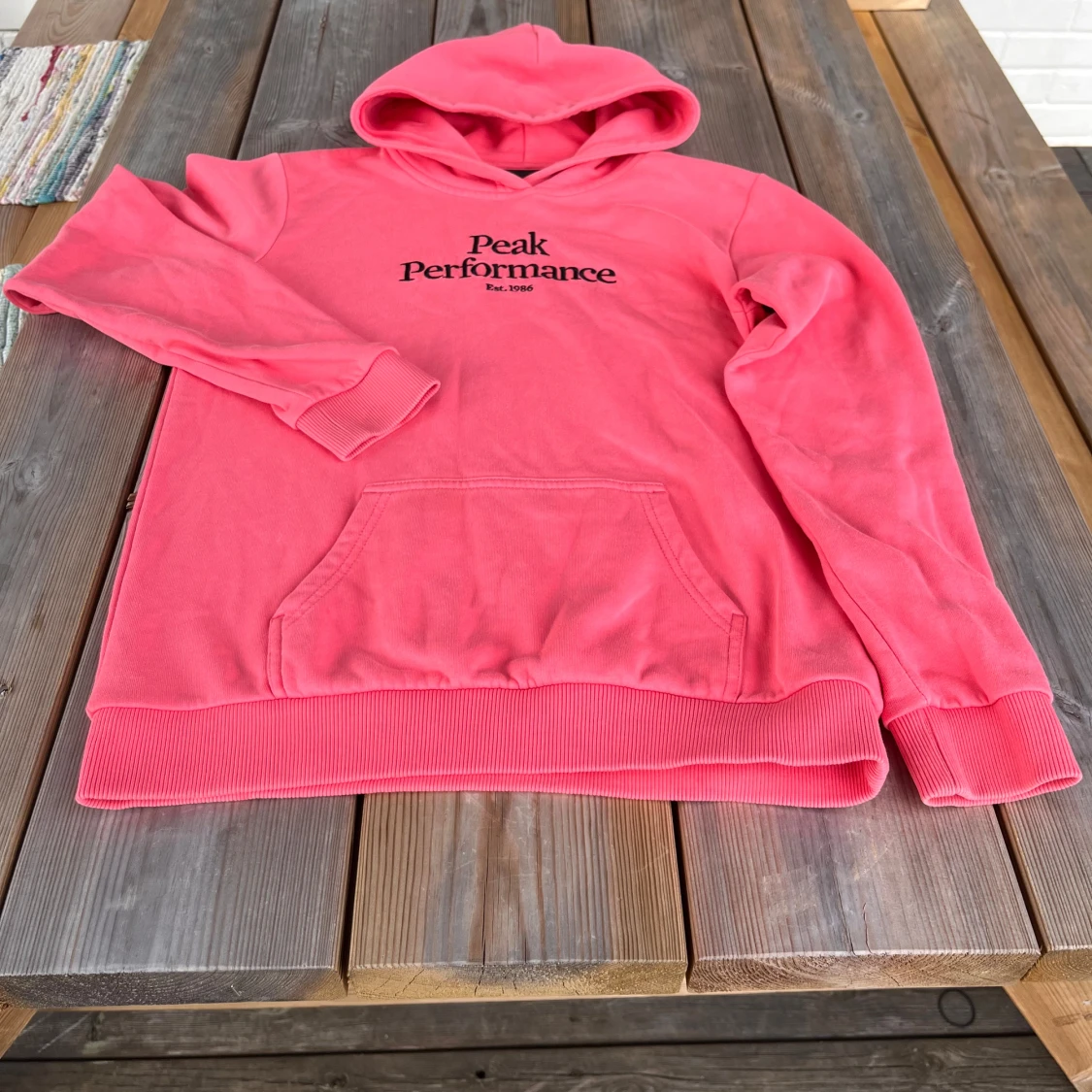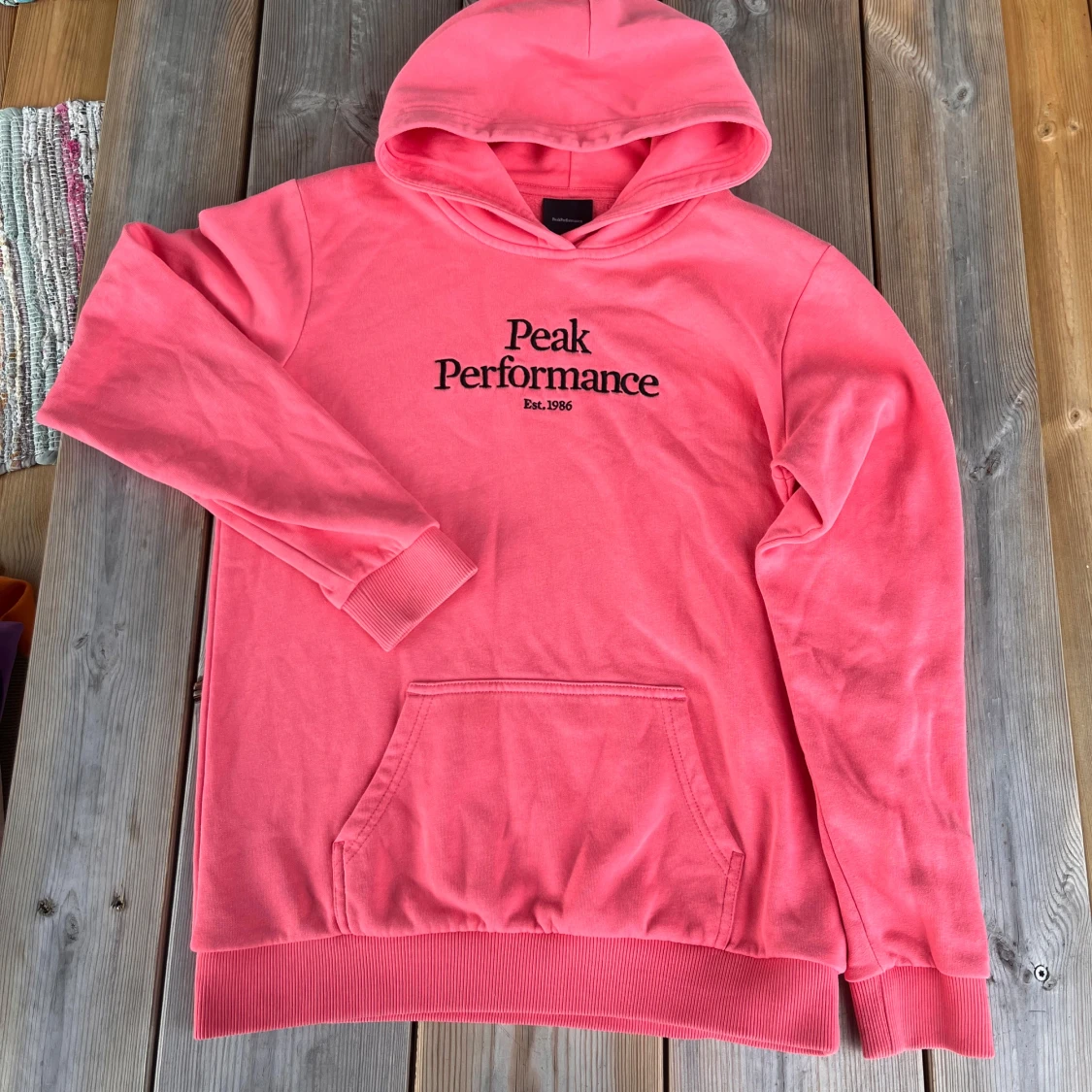 Säljer en snygg och bekväm korallrosa hoodie från Peak Performance. Som ny!