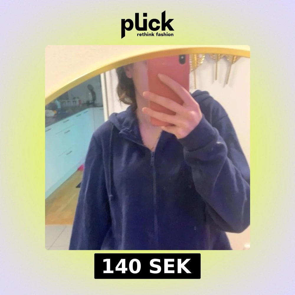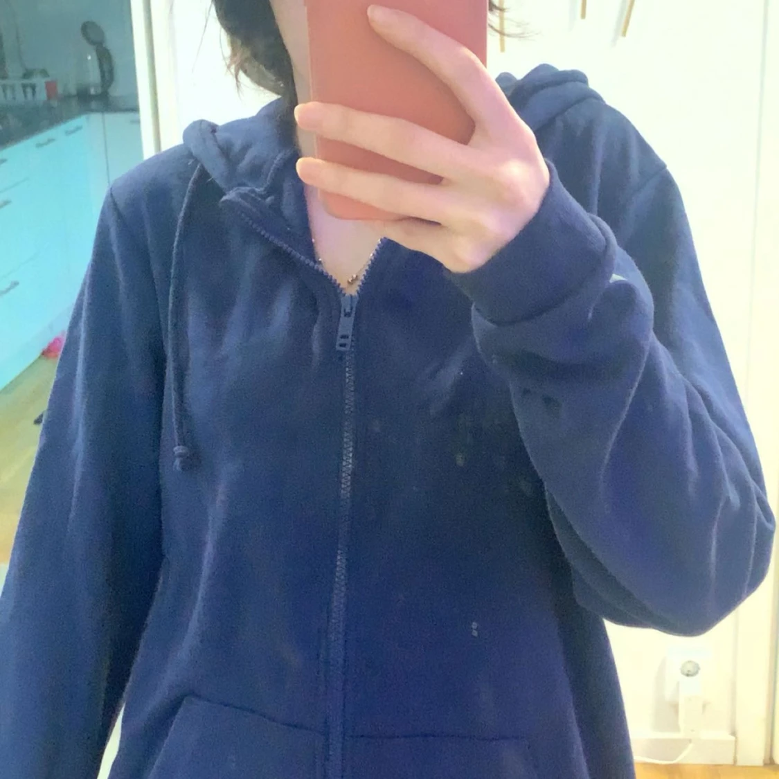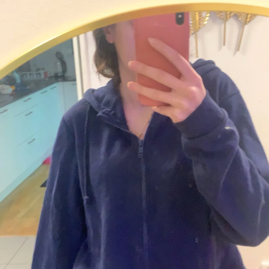 Säljer en mysig mörkblå hoodie med dragkedja och luva. Köpt från stadium. Jätte skön material knappt använd.