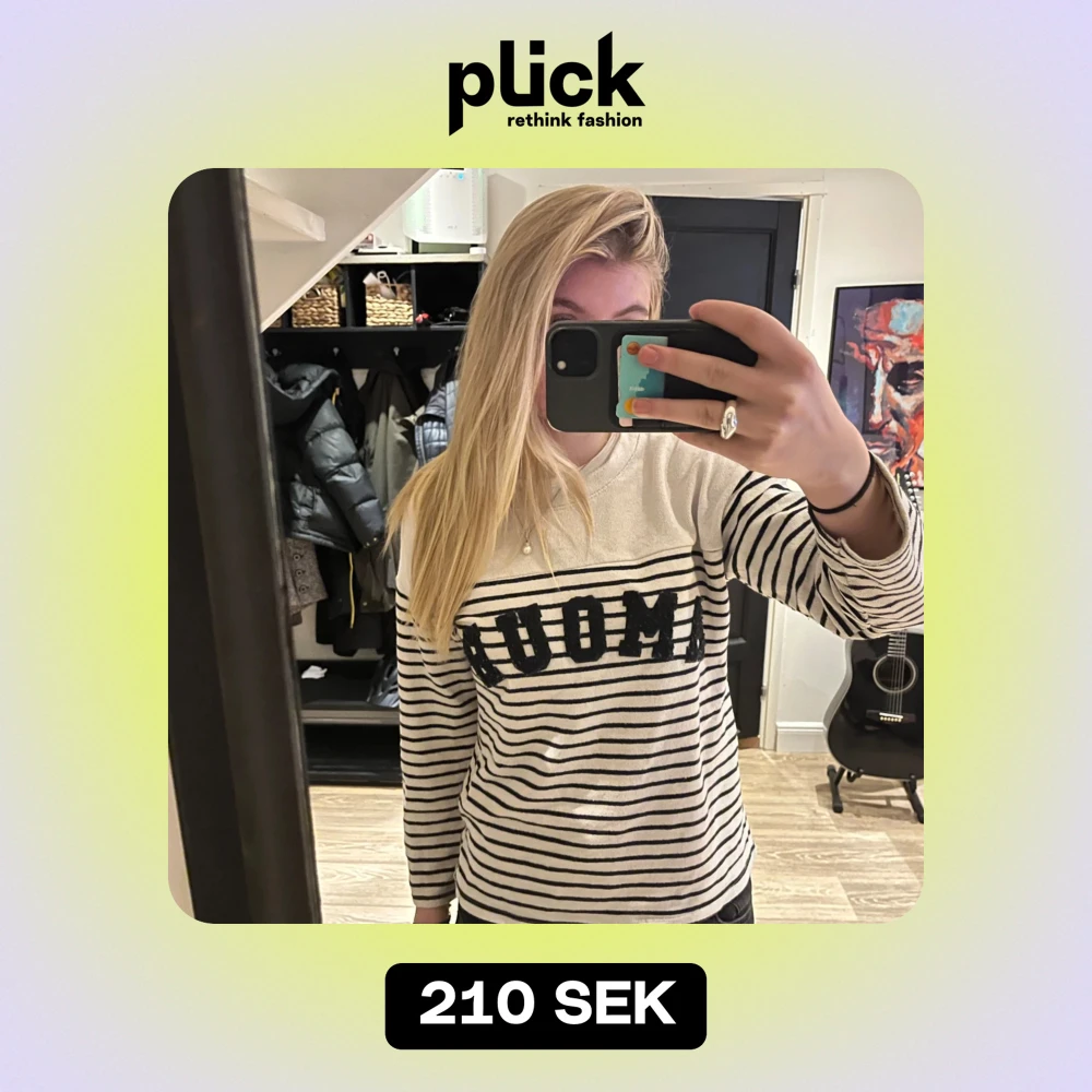 Säljer en snygg randig tröja med texten ’AMOUR' i svart på bröstet. Tröjan är vit med svarta ränder och har långa ärmar. Perfekt för en avslappnad stil och passar bra till jeans. Hör av dig vid intresse!