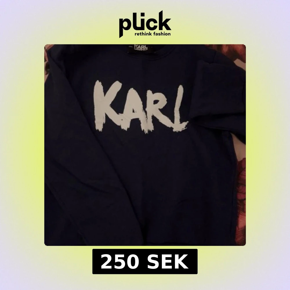 Säljer en mörkblå sweatshirt från Karl Lagerfeld med stort vitt tryck 'KARL' på bröstet. Tröjan är i bomull och har en klassisk rund hals och långa ärmar. Perfekt för en stilren och avslappnad look. I perfekt skick. Storlek S och sitter slim fit. Rensar garderob därav priset!