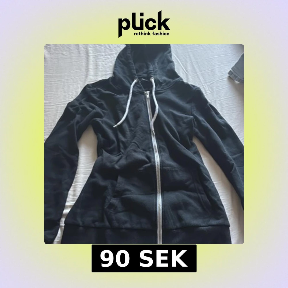 Svart hoodie med dragkedja och huva