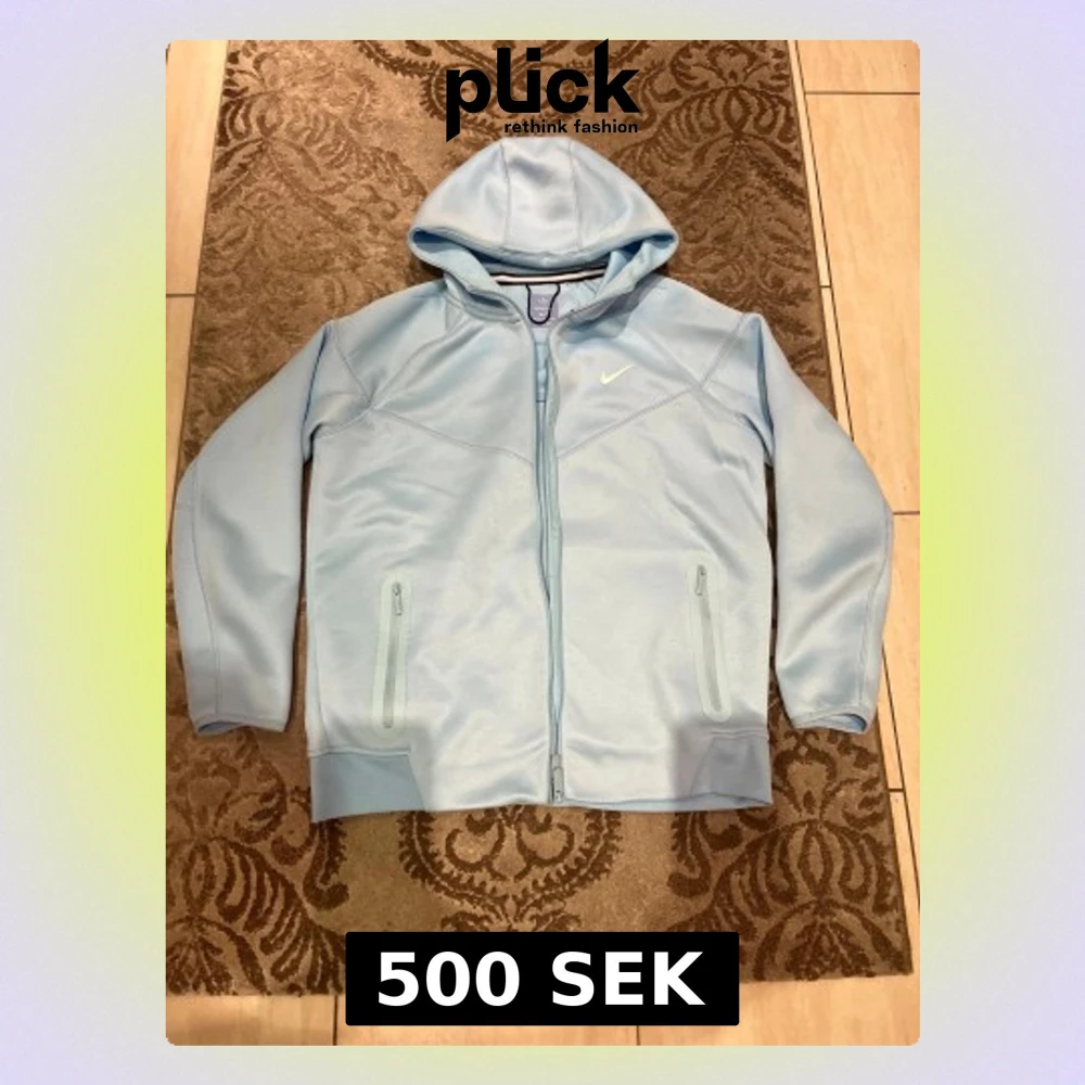 Säljer en ljusblå hoodiejacka från Nike NOCTA med dragkedja hela vägen, två fickor med dragkedja och huva. Jackan har en clean look med NOCTA-logga i nacken och Nike Swoosh på bröstet. Perfekt för dig som gillar streetwear och sportig stil.